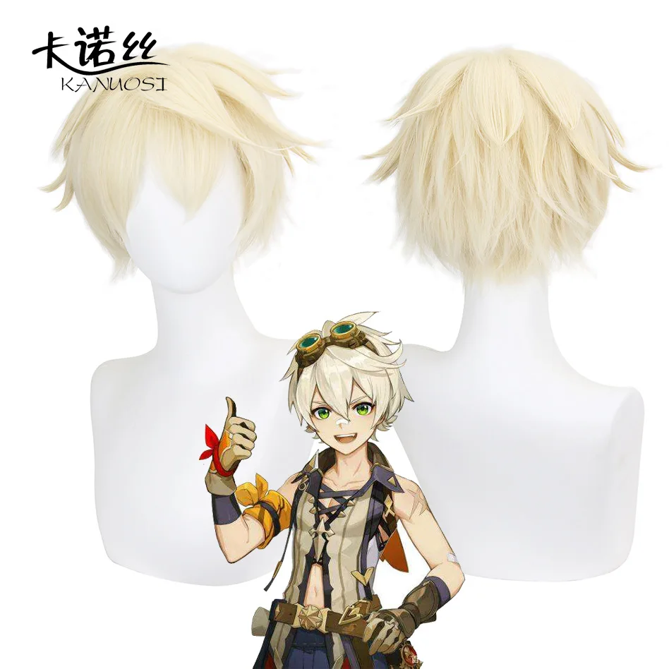 Парик из аниме Беннетт для косплея геншина Game, термостойкие волосы золотистого цвета, костюм аниме для ролевых игр