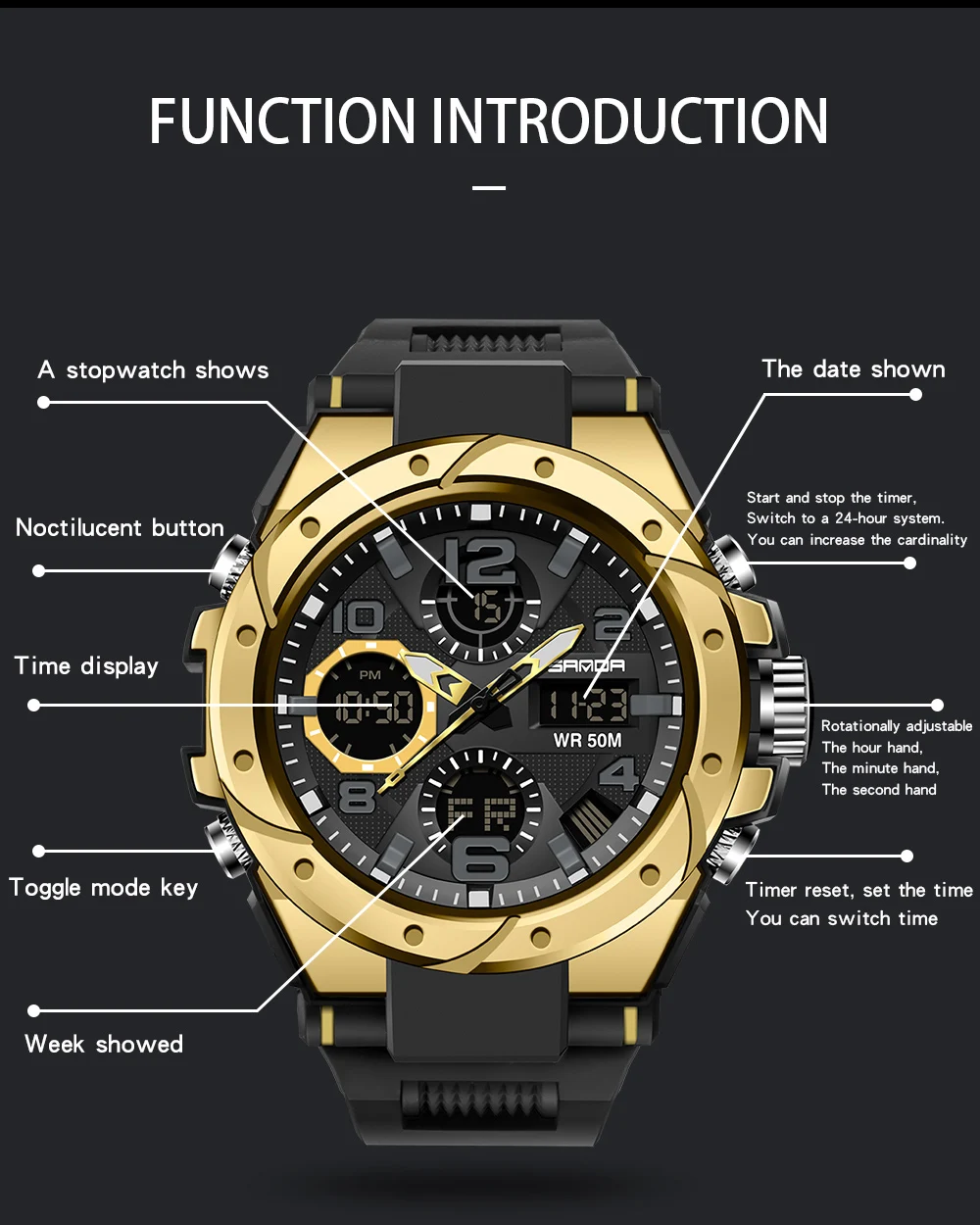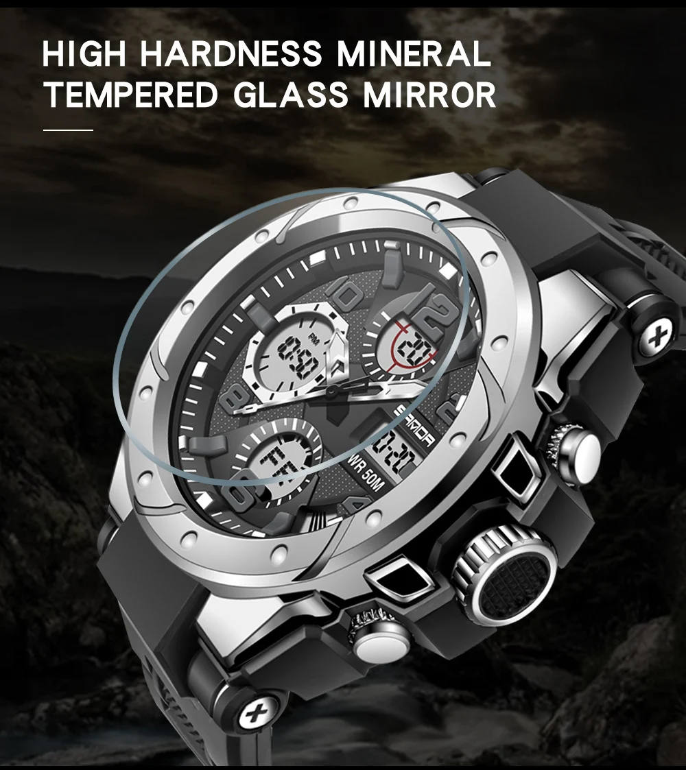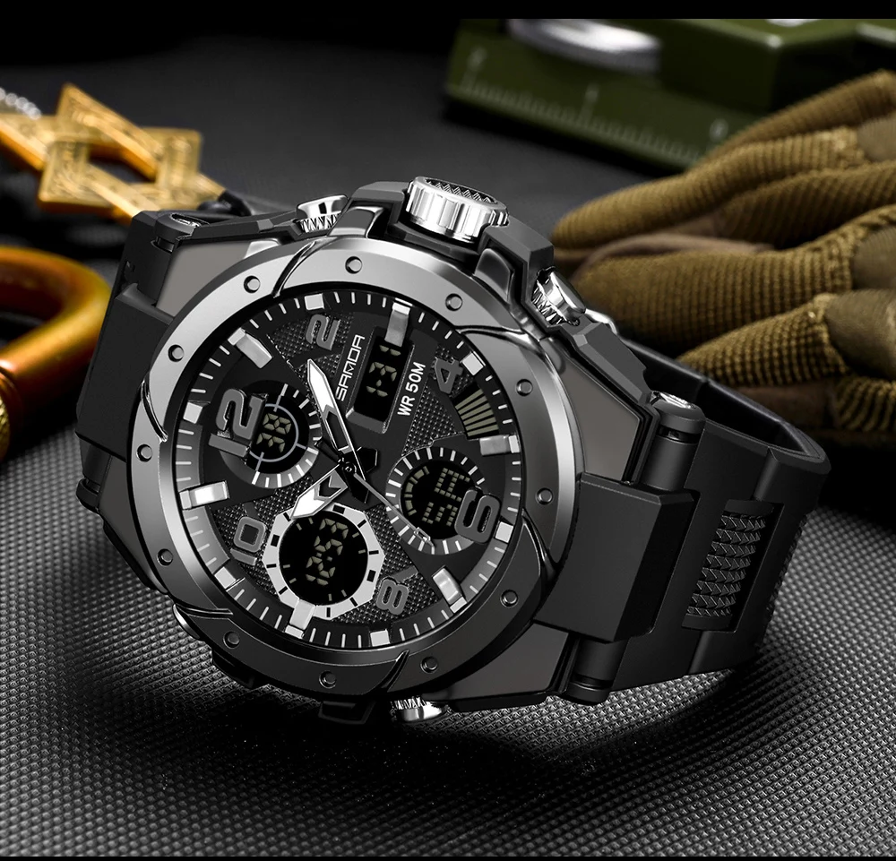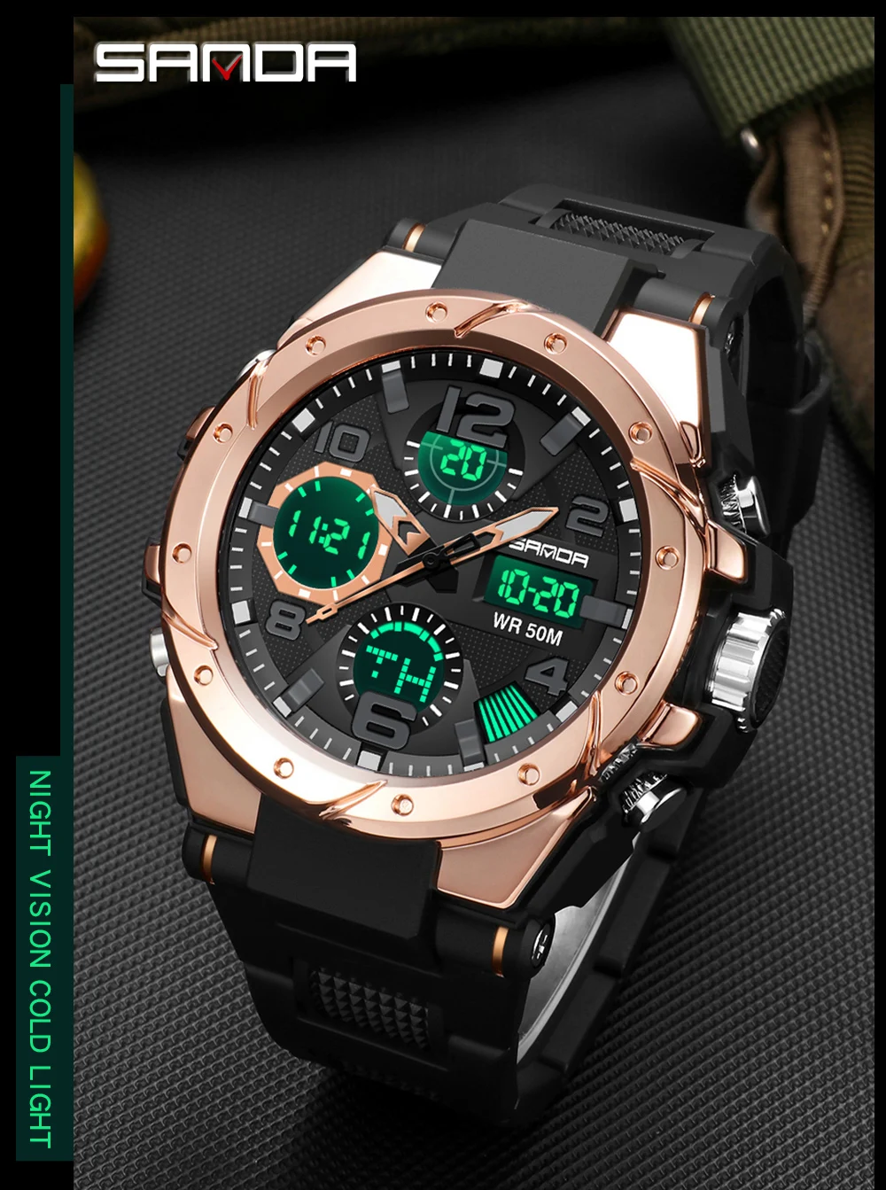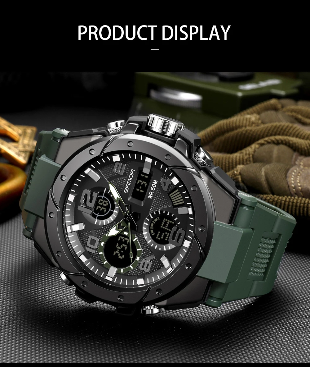 Часы мужские кварцевые, спортивные, водонепроницаемые, со светодиодной подсветкой