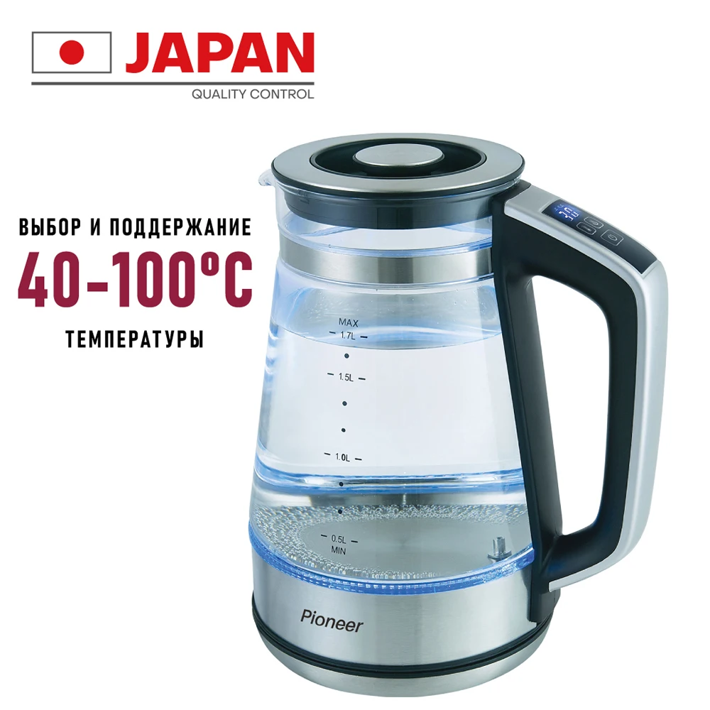 Мы представляем Вашему вниманию новинку бренда Pioneer-стильный, современный Электрический чайник ke815g, изготовленный из термостойкого стекла с светодиодный дисплеем и удобным сенсорным управлением на экране. Чайник выглядит очень гармонично благодаря своей форме, изогнутые стороны делают его изысканным и в то же время стильным. Подходит для любого интерьера современной кухни. Задняя лампа превращает процесс кипения в лампу, благодаря освещению вы можете видеть уровень воды в процессе кипения даже в полной темноте. Для определения уровня воды на стеклянной части чехол применяется в масштабе 0,5л, 1л, 1,5л и 1,7л. Чайник имеет мощность 2200 Вт и объем 1,7 л, достаточно, чтобы купить чай даже большой компании друзей. Он оснащен дисковым нагревательным элементом и контроллером Strix (UK), что обеспечивает безопасное и прочное использование. Это наш чайник более 15 000 циклов кипения. Подставка для чайника вращается на 360 градусов, она обеспечивает место для хранения шнура питания. Качественный Электрический чайник из стекла является ключом к безопасности вашей семьи и чистоте воды, которую вы используете. Он экологически чистый, прочный и оснащен всеми необходимыми индикаторами и защитными функциями: электрический чайник pioneer ke815g обеспечит комфорт на вашей кухне, в доме, И также станет отличным подарком для ваших близких и друзей на праздник или дом. Мы уверены, что вы будете удовлетворены покупкой.