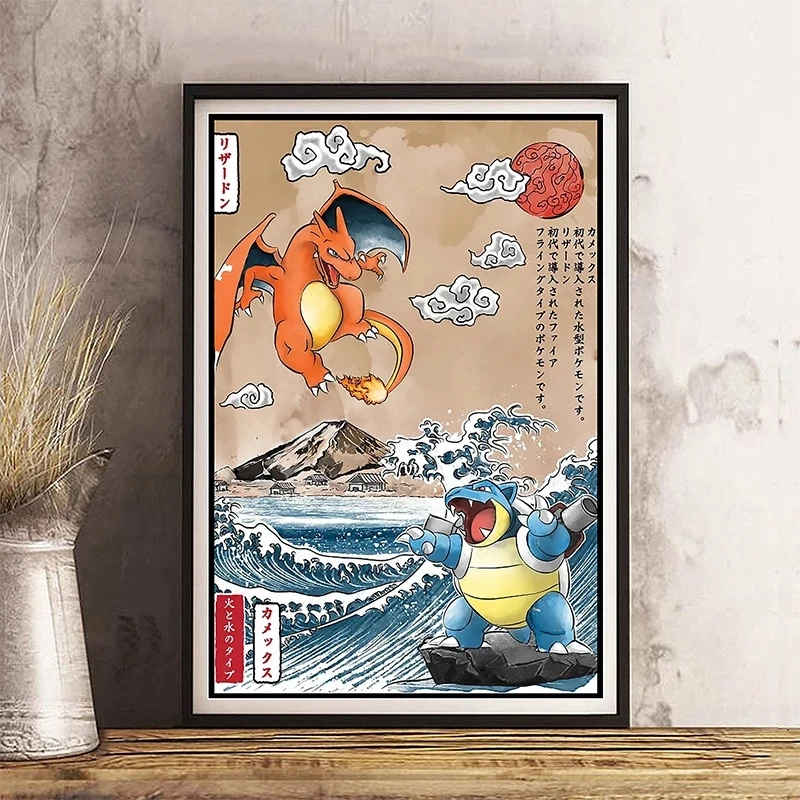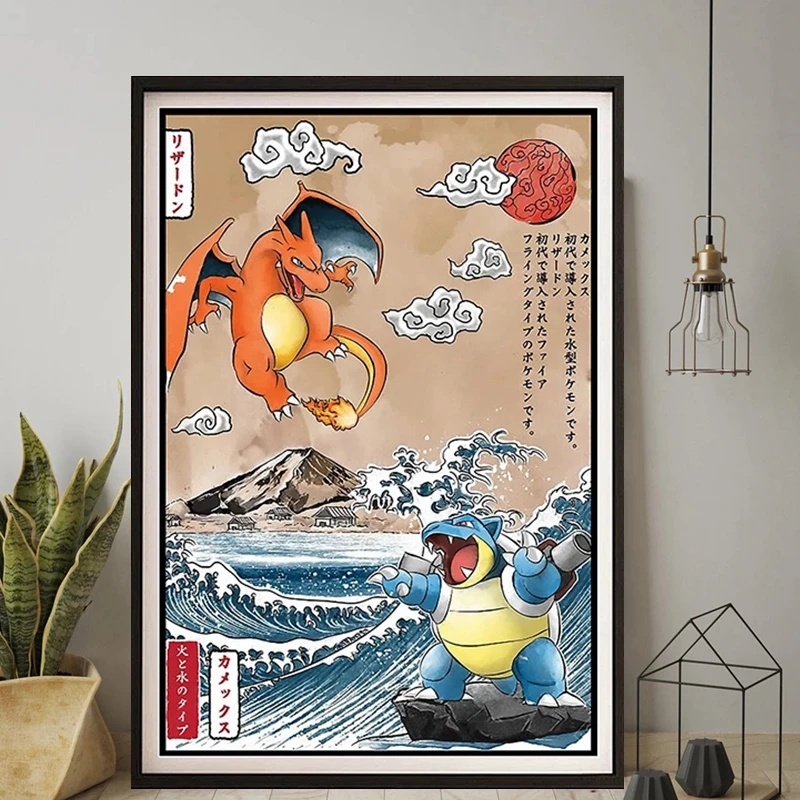 Постер Чаризард бластоиза, аниме мультфильм с покемоном, Картина на...
