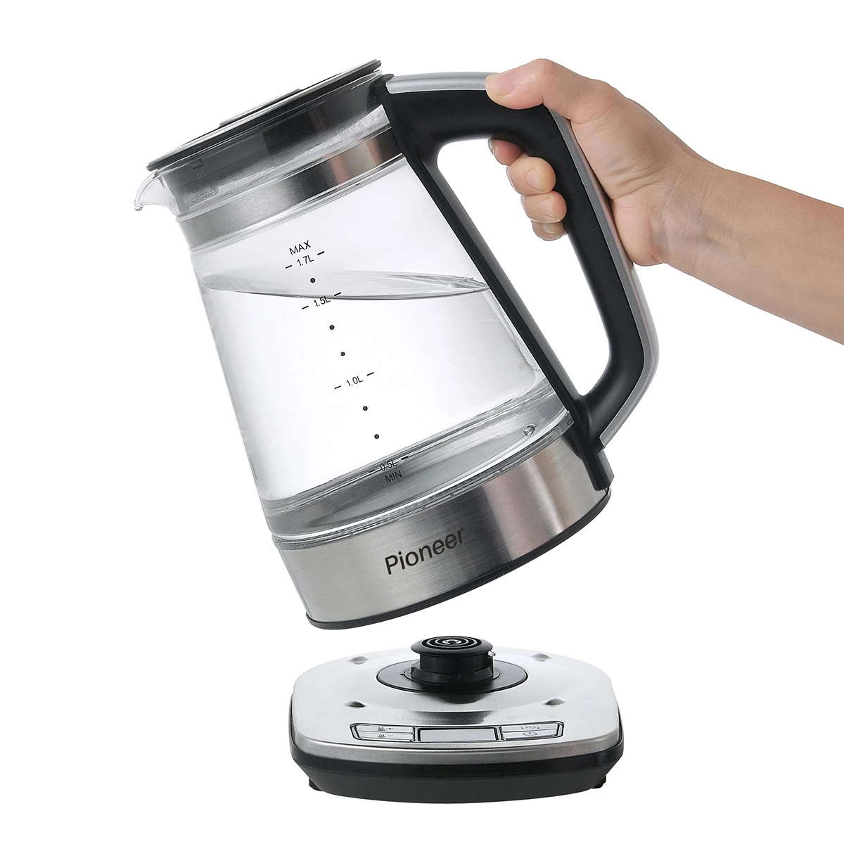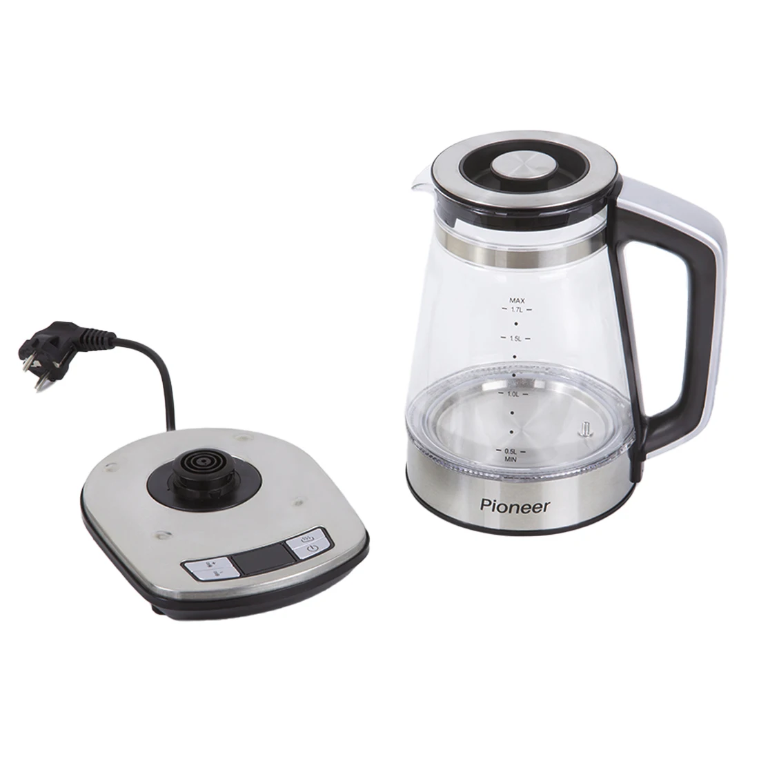 Мы представляем Вашему вниманию новинку бренда Pioneer-стильный, современный Электрический чайник из термостойкого стекла с удобным электронным управлением на основе ЖК-дисплея и кнопок с подсветкой.Эта модель обеспечивает выбор температуры от 40 до 100 ℃ с шагом 5 градусов при коротком нажатии или 10 градусов при длительном нажатии, А также выдерживает температуру от 40 ℃ до 95 ℃ в течение 60 минут. Все параметры отображаются на ЖК-дисплее.Чайник выглядит очень гармонично благодаря своей форме, изогнутые стороны делают его форму изысканной и в то же время стильной. Он подойдет для любого интерьера современной кухни. Благодаря подсветке кнопок и дисплею на основе, температурные режимы в кипящем чайнике можно увидеть даже в полной темноте.Для определения уровня воды на стеклянной части чехол применяется шкала с отметками 0,5л, 1л, 1,5л и1,7л.Чайник имеет мощность 2200 Вт и объем 1,7 л, достаточно, чтобы купить чай даже большой компании друзей. Он оснащен дисковым нагревательным элементом и контроллер Strix (Великобритания), который обеспечивает безопасное и прочное использование. Это наш чайник более 15 000 циклов кипения. Предоставляется основание с поворотом на 360 °.Для удобства хранения шнура в нижней части основания предусмотрено специальное углубление.Электрический чайник pioneer ke816g создадут уют на вашей кухне или даче, так как это может стать отличным подарком для ваших близких и друзей на праздник. Мы уверены, что вы будете удовлетворены покупкой.