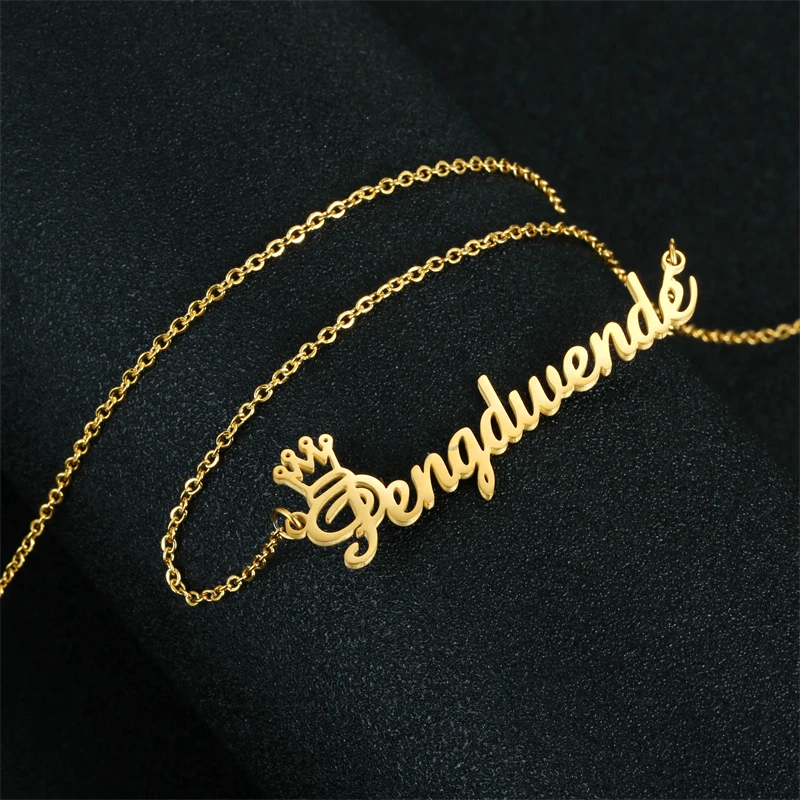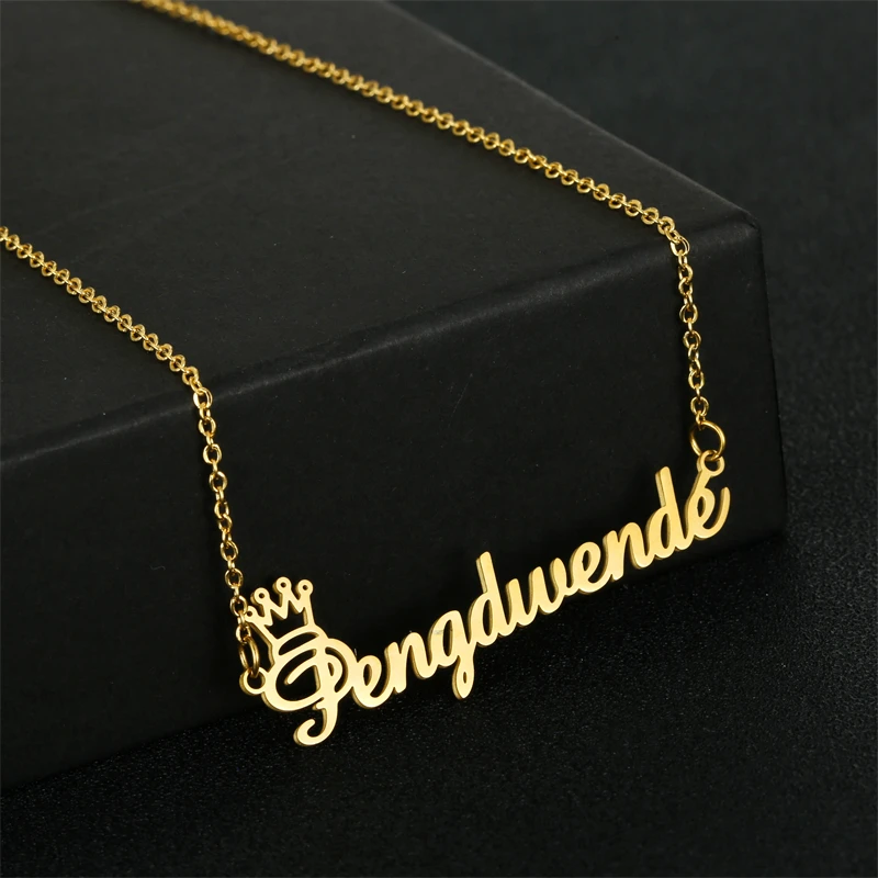 Ожерелье с именем для женщин, персонализированное колье с подвеской в виде короны, сердца, именной таблички, чокер на заказ, ювелирное изделие в подарок