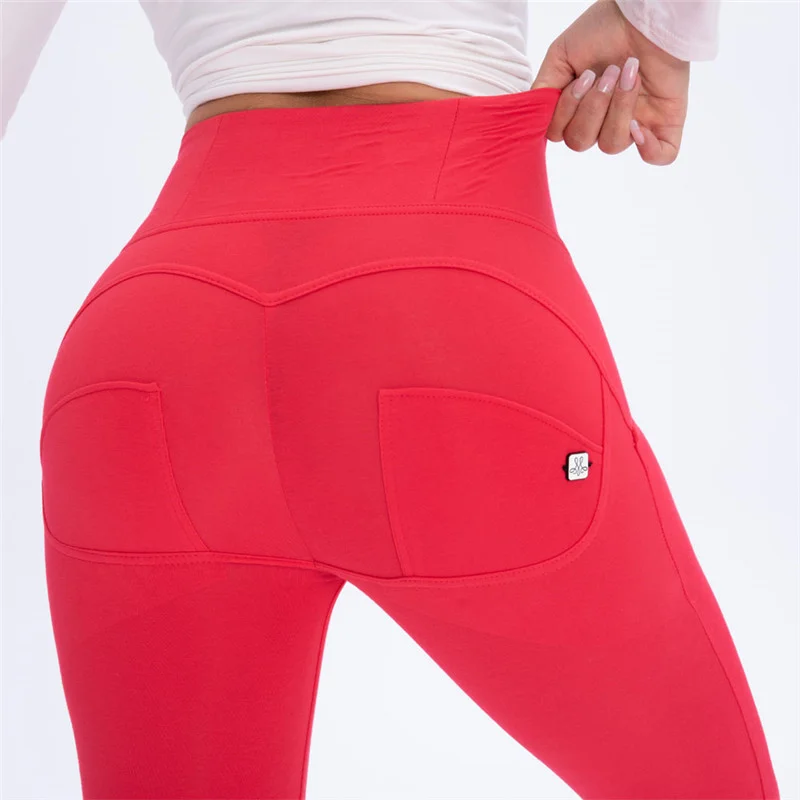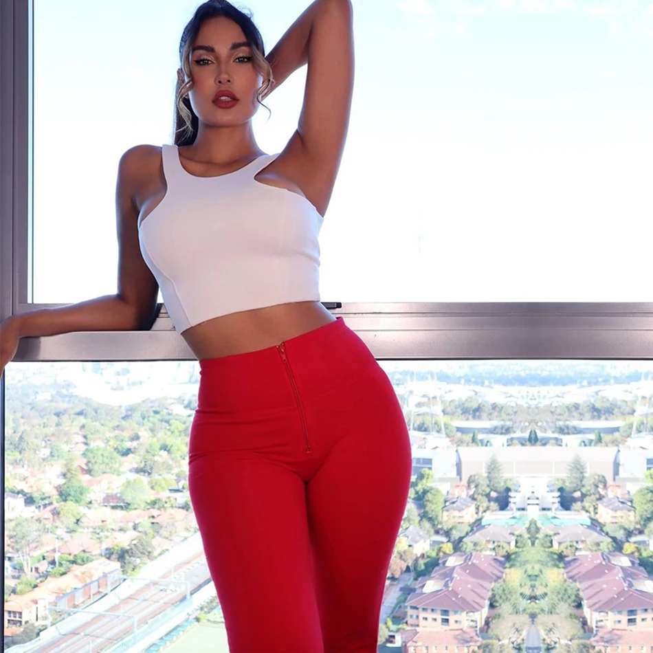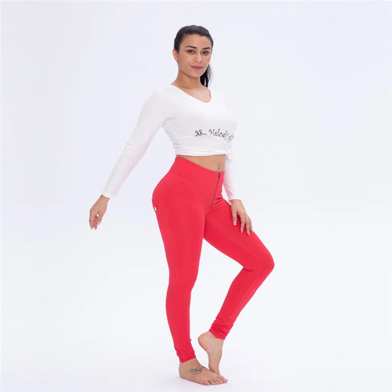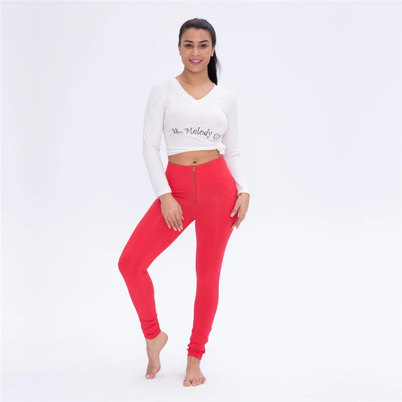 Женские облегающие брюки Melody, красные прямые облегающие брюки с высокой посадкой, Стрейчевые брюки-карандаш с высокой талией для фитнеса