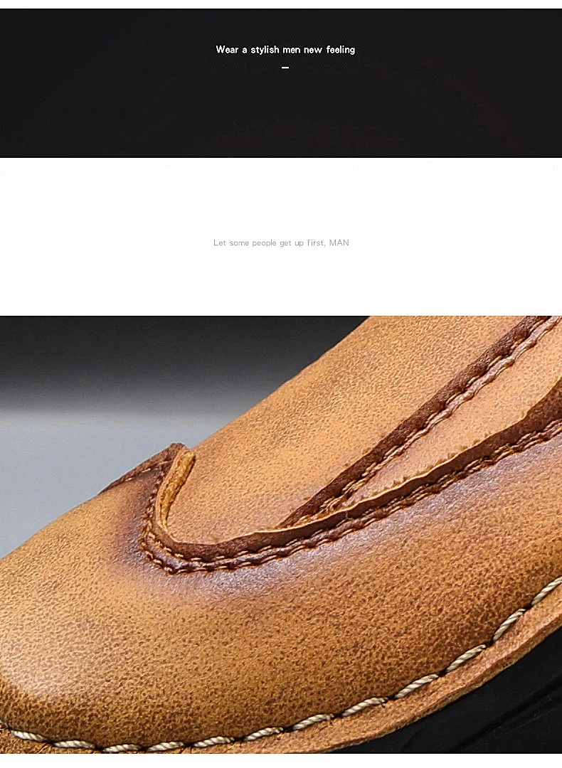 Мужские мокасины из натуральной кожи, коричневые мокасины ручной ра...