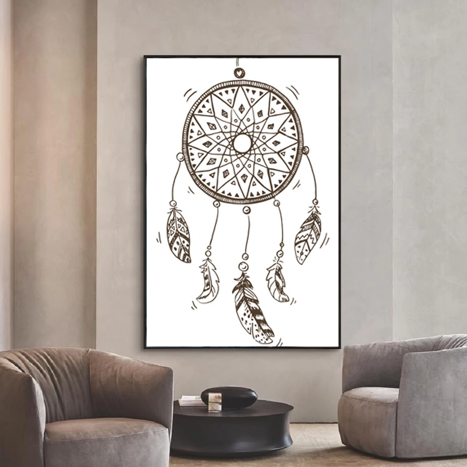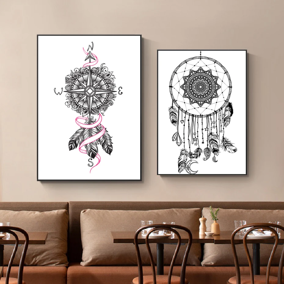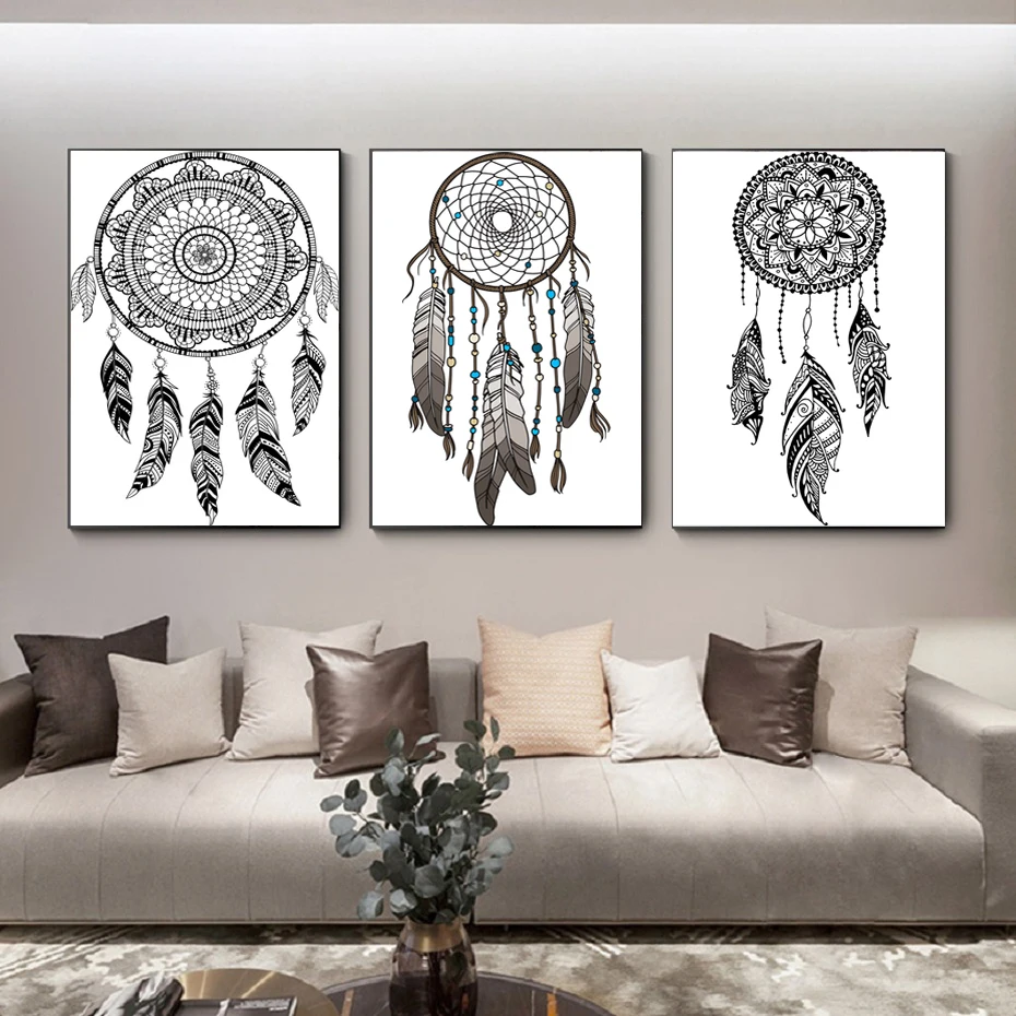 Цыганский этнический индийский черно-белый богемный Ловец снов декоративное живописное полотно плакат настенное искусство для спальни гостиной дома D