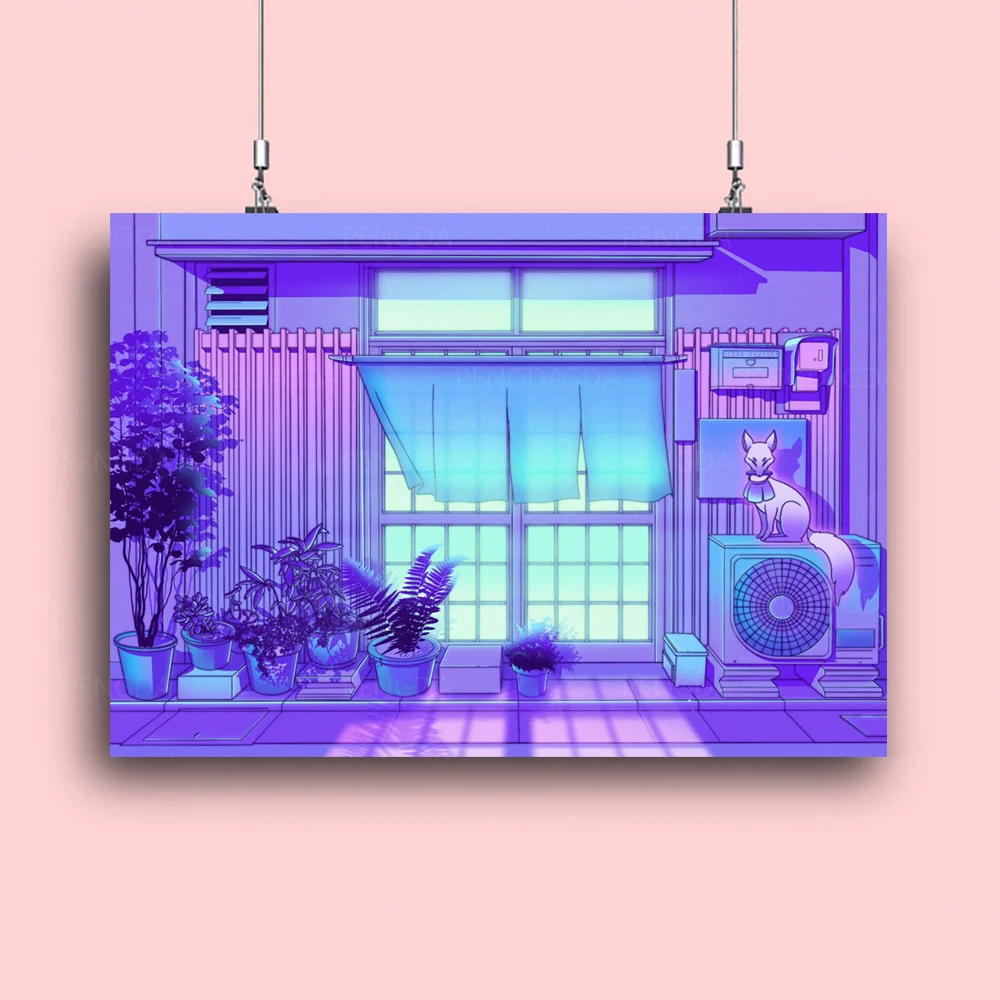 Холст для украшения дома Vaporwave, настенный неоновый плакат, моду...