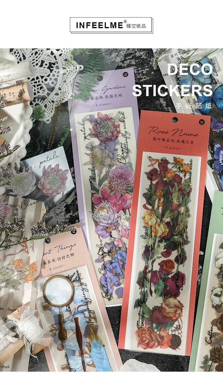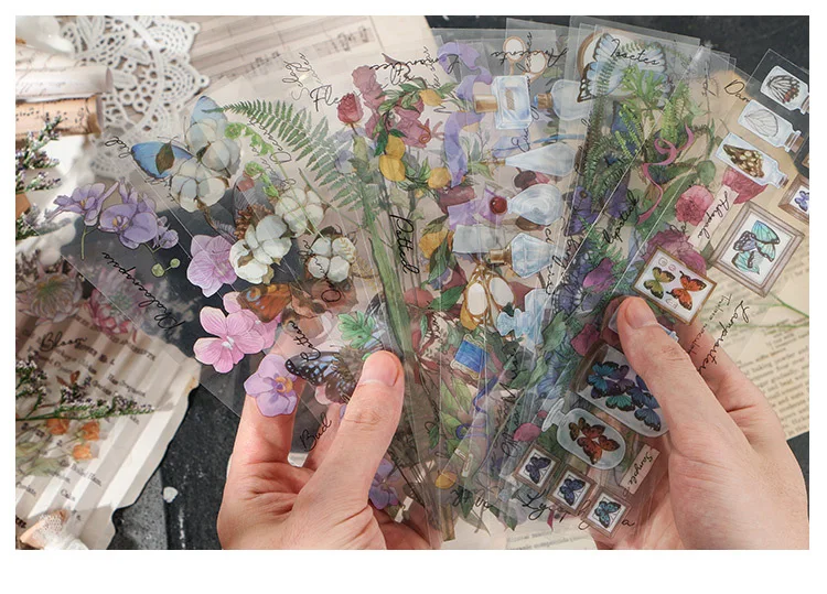 6 листов, винтажные наклейки-бабочки в виде цветов