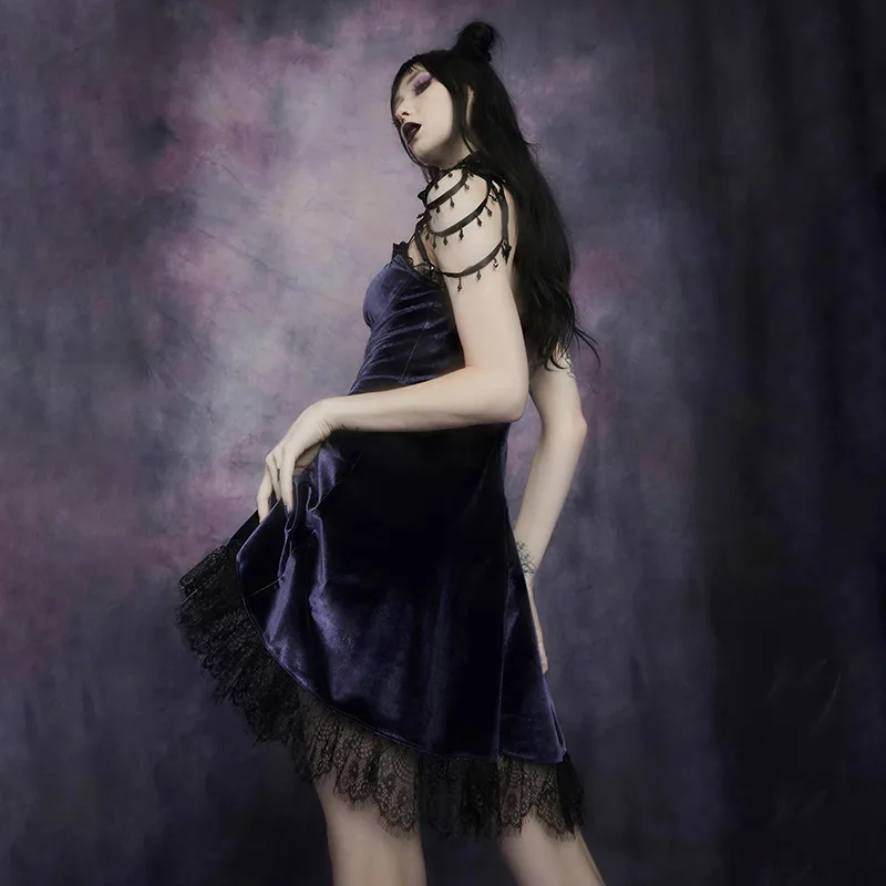 Сексуальное женское готическое платье, однотонное винтажное бархатн...