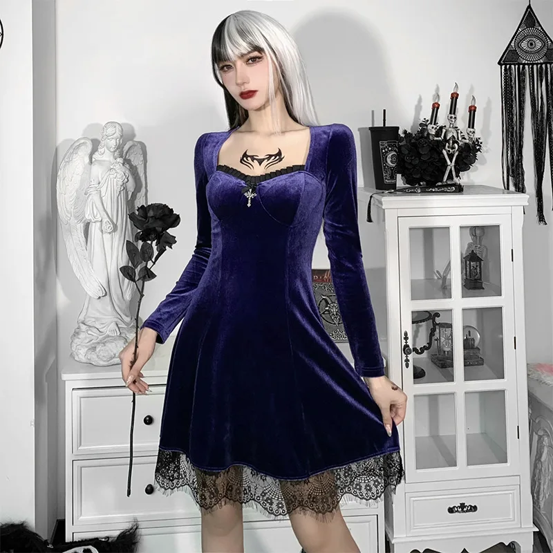 Женские винтажные готические велюровые осенние платья в стиле Лолит...
