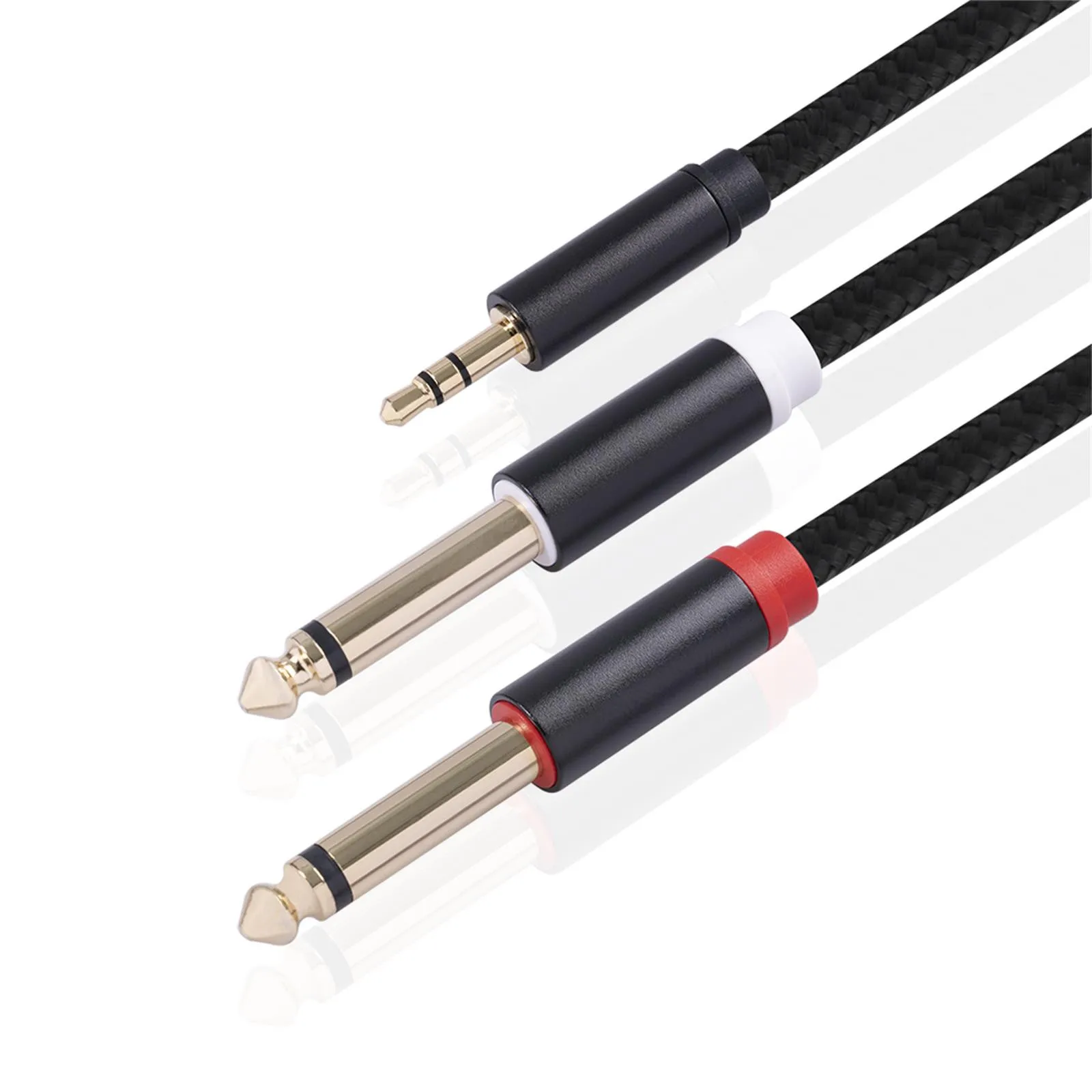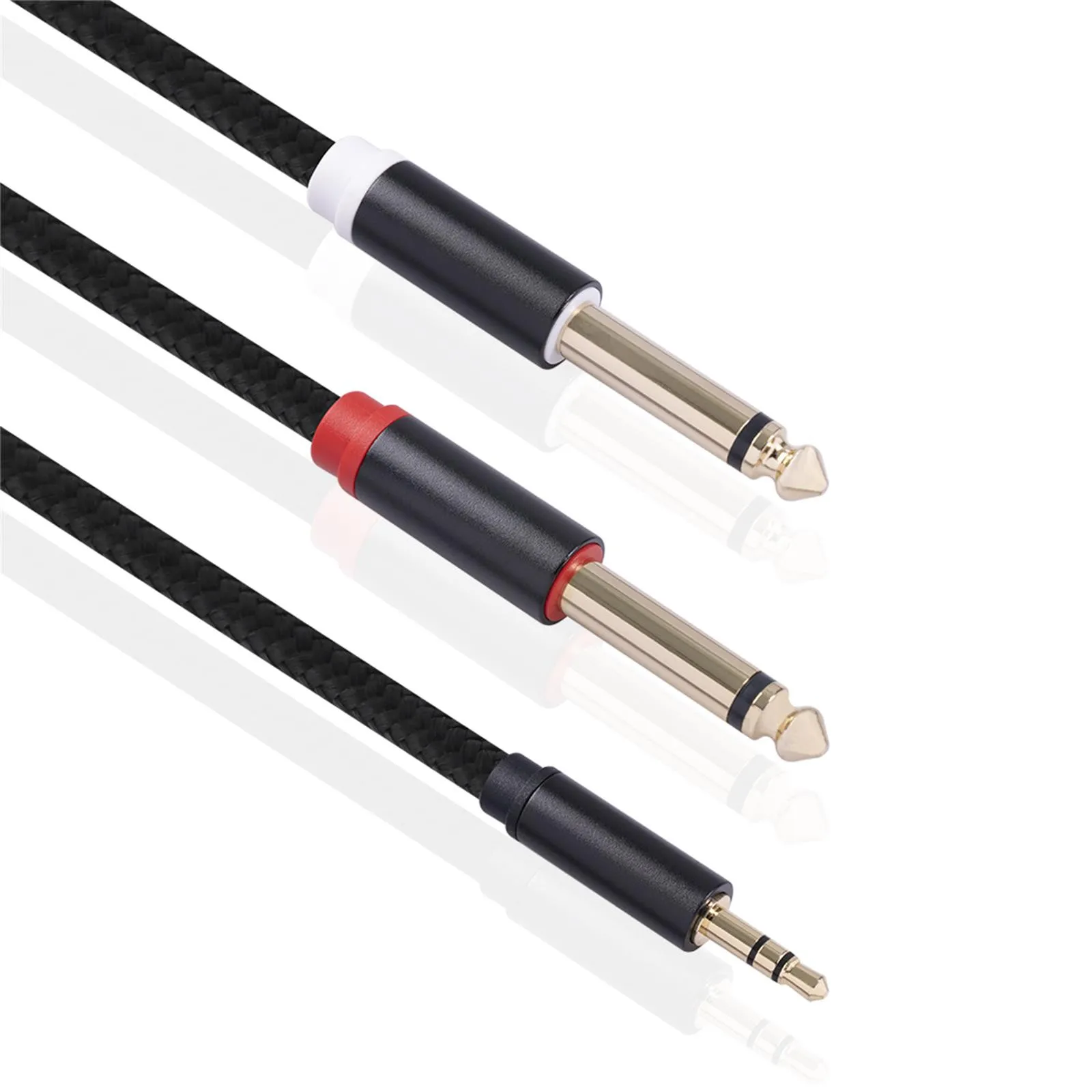 6. Кабель может использоваться для разделения 3,5 мм несимметричный стереосигнала во двух 6,35 TS (слева/справа) несимметричный подойдет как для повседневной носки, так сигналов или скомбинировать два 6,3 подойдет как для повседневной носки, так сигналы (слева/справа) В рамках одного 3,5 мм стерео акустическим. После разделения позиции находится ближе к 6,35, и для этого способа работы расстояние между точка бифуркации и 6,35 интерфейс составляет около 35 см
