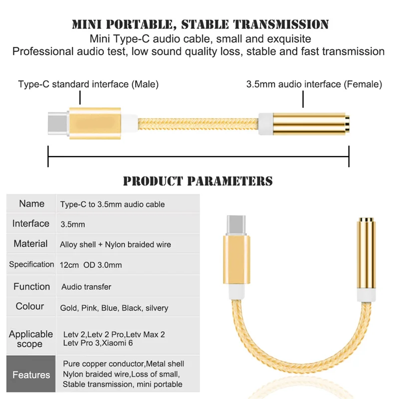 Аудиокабель для наушников с разъемом типа C 3,5 для Letv 2 2pro max...