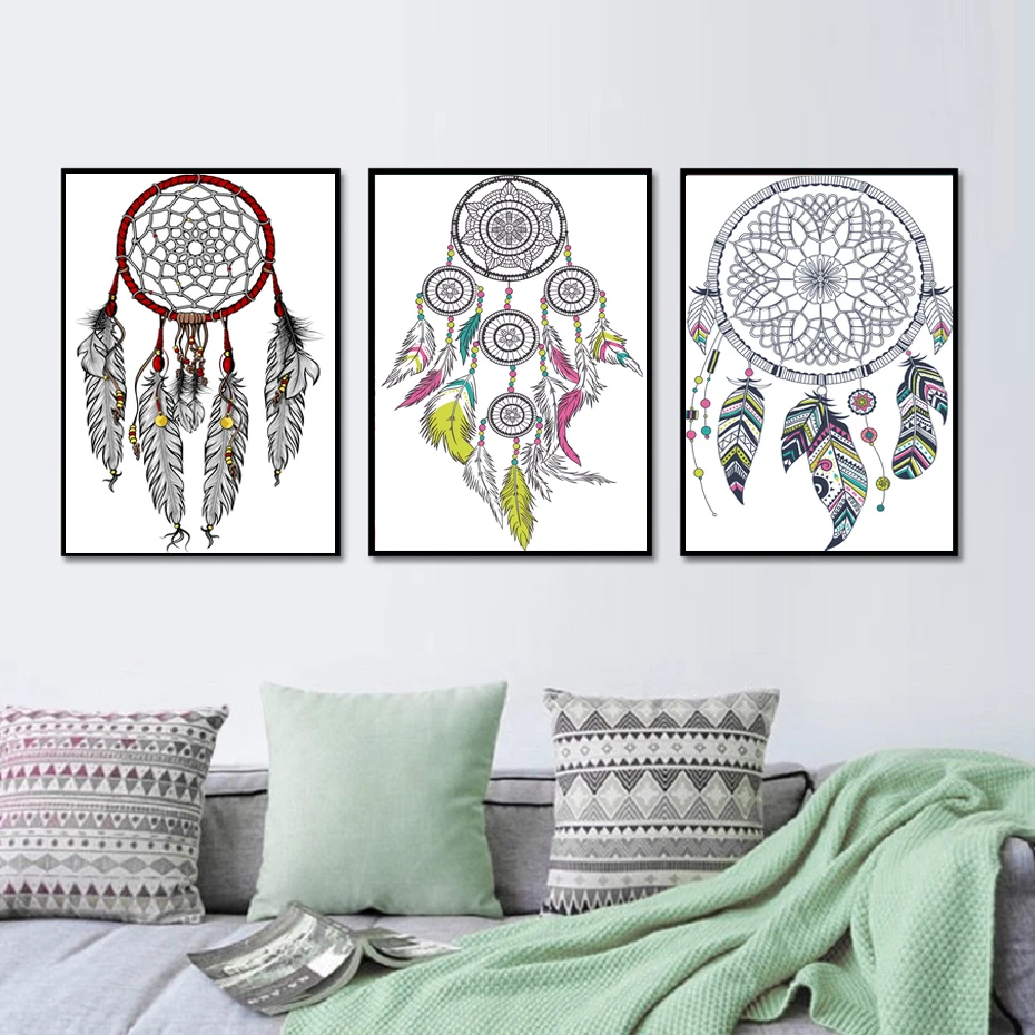 Искусство стены в этническом богемском стиле, цвет Ловец снов, искусство, подарок для спальни, гостиной, украшение для дома