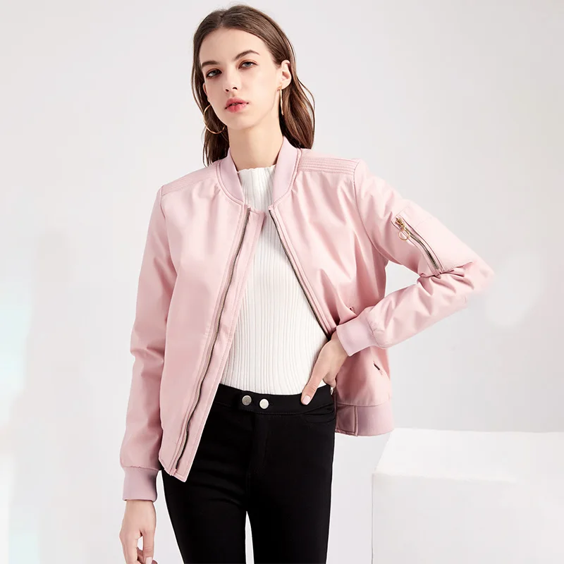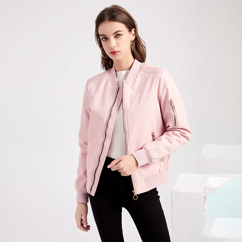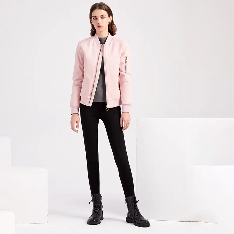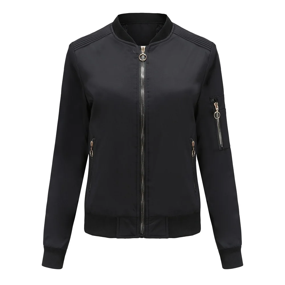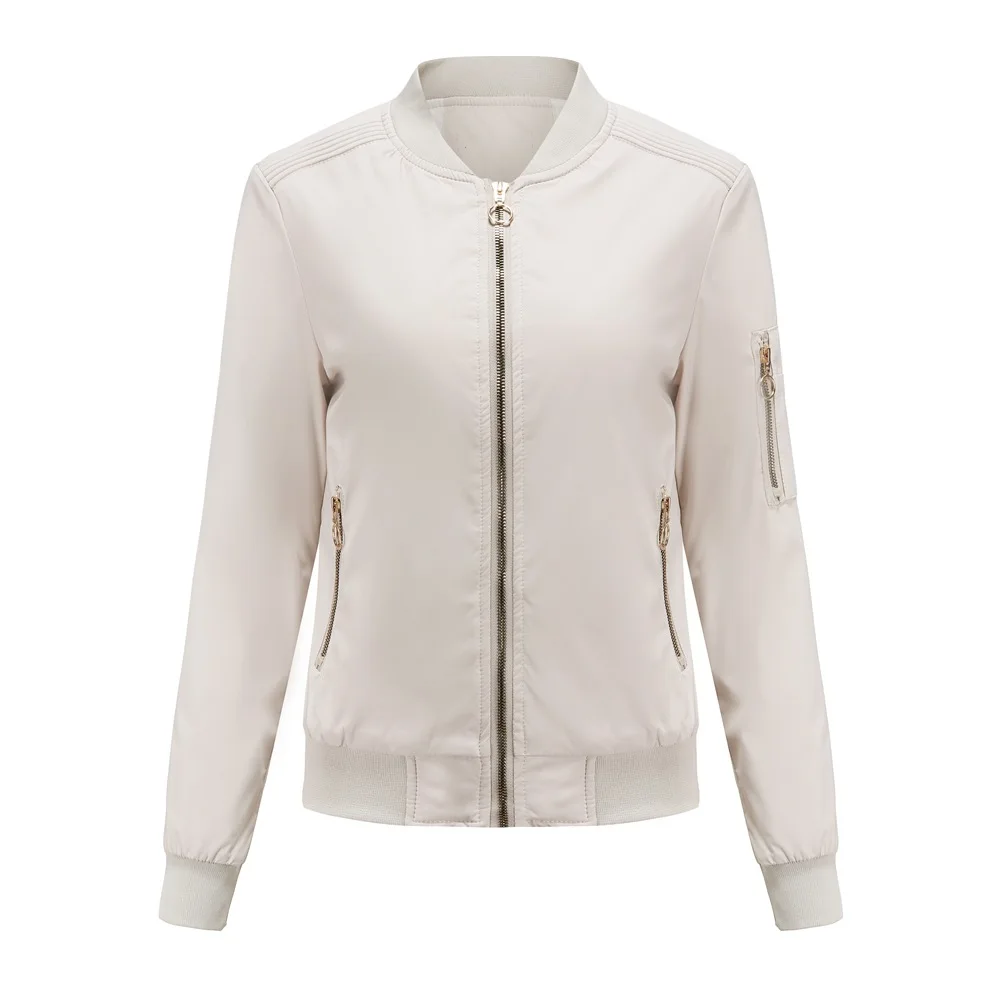 Куртка женская, на молнии, с Бейсбольным воротником, на весну и осень