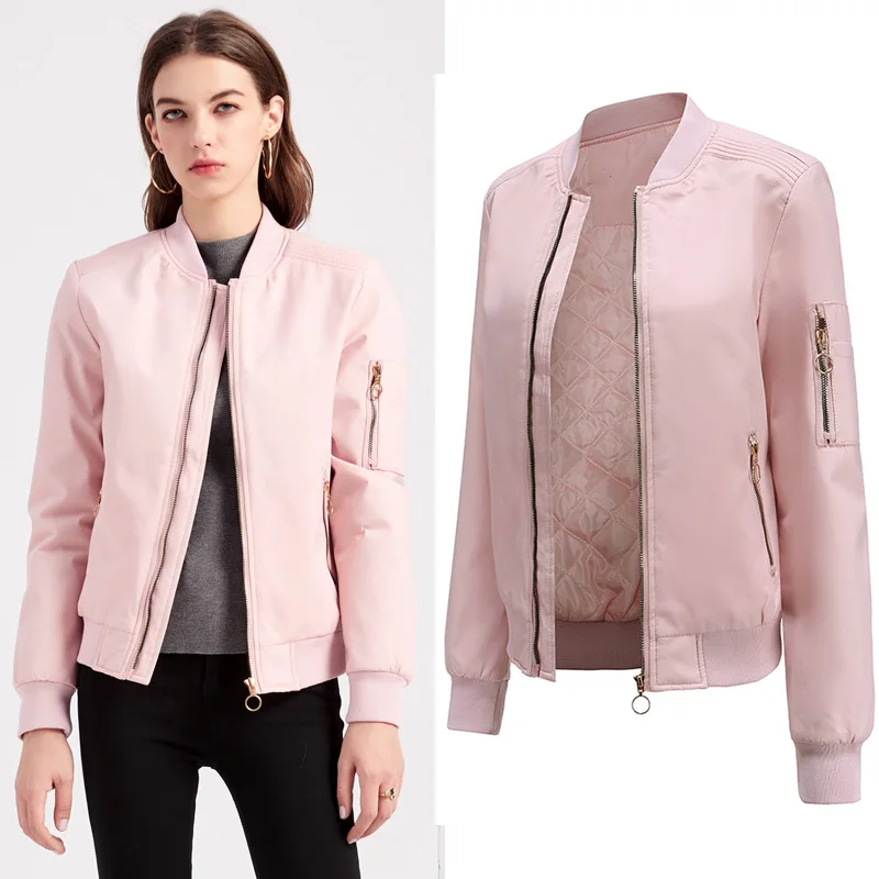 Куртка-бомбер Женская Весенняя, розовая, теплая, с длинным рукавом,...