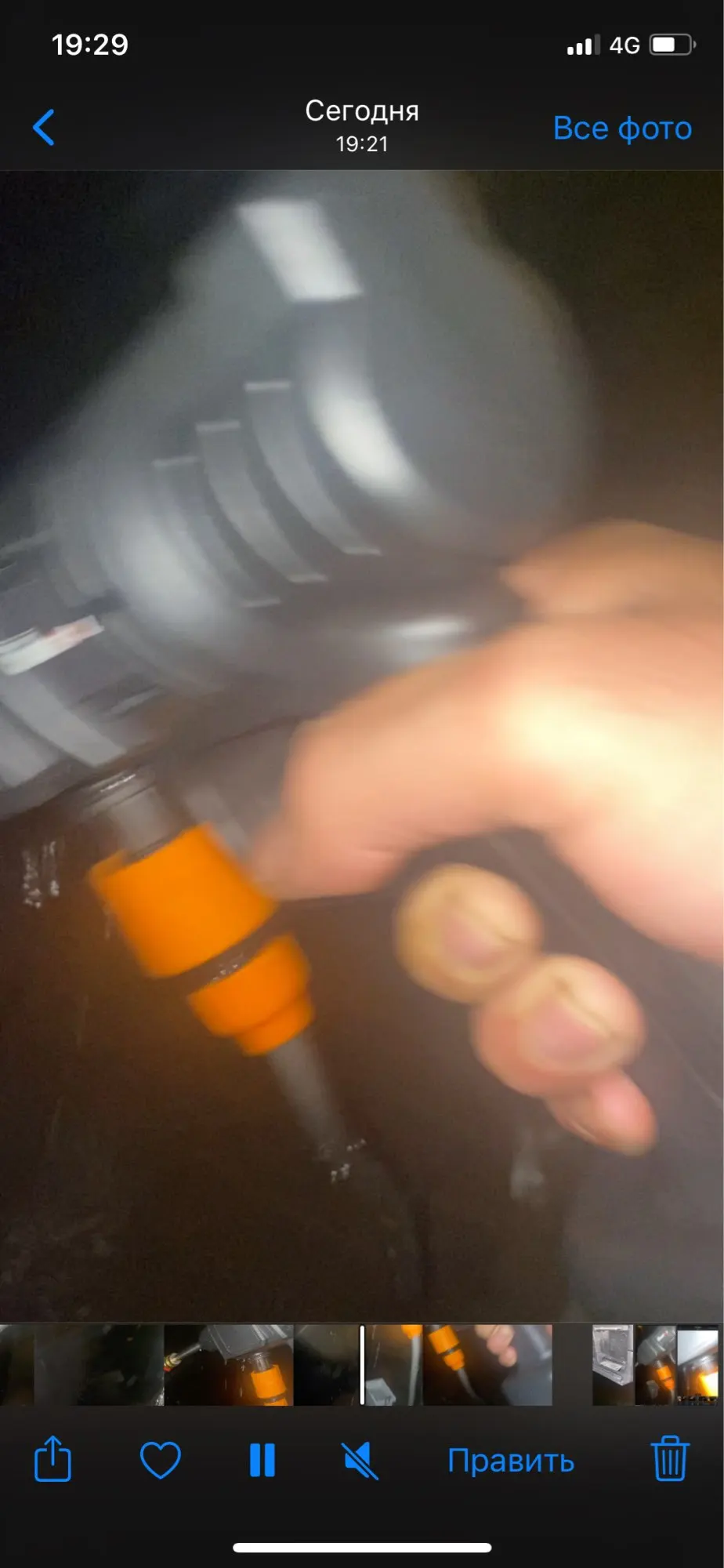Плохая упаковка, Зарядное устройство в процессе транспортировки сломано. На полном заряде комплектных аккумуляторов устройство работает 4 минуты, 9000 мА буду еще проверять:(. Рабочее давление, проверить не пока не удалось, но на штатных форсунках не больше 6 атмосфер (как из городского водопровода).