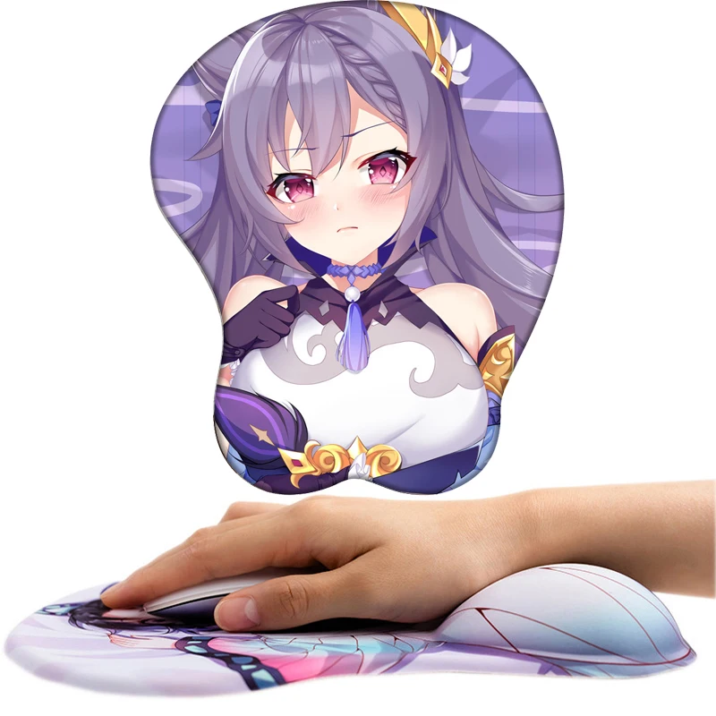 Привлекательный коврик для мыши Keqing, 3D силиконовый коврик для мыши, подставка для запястья, креативная мышь Genshin Impact Keqing, реквизит для косплея