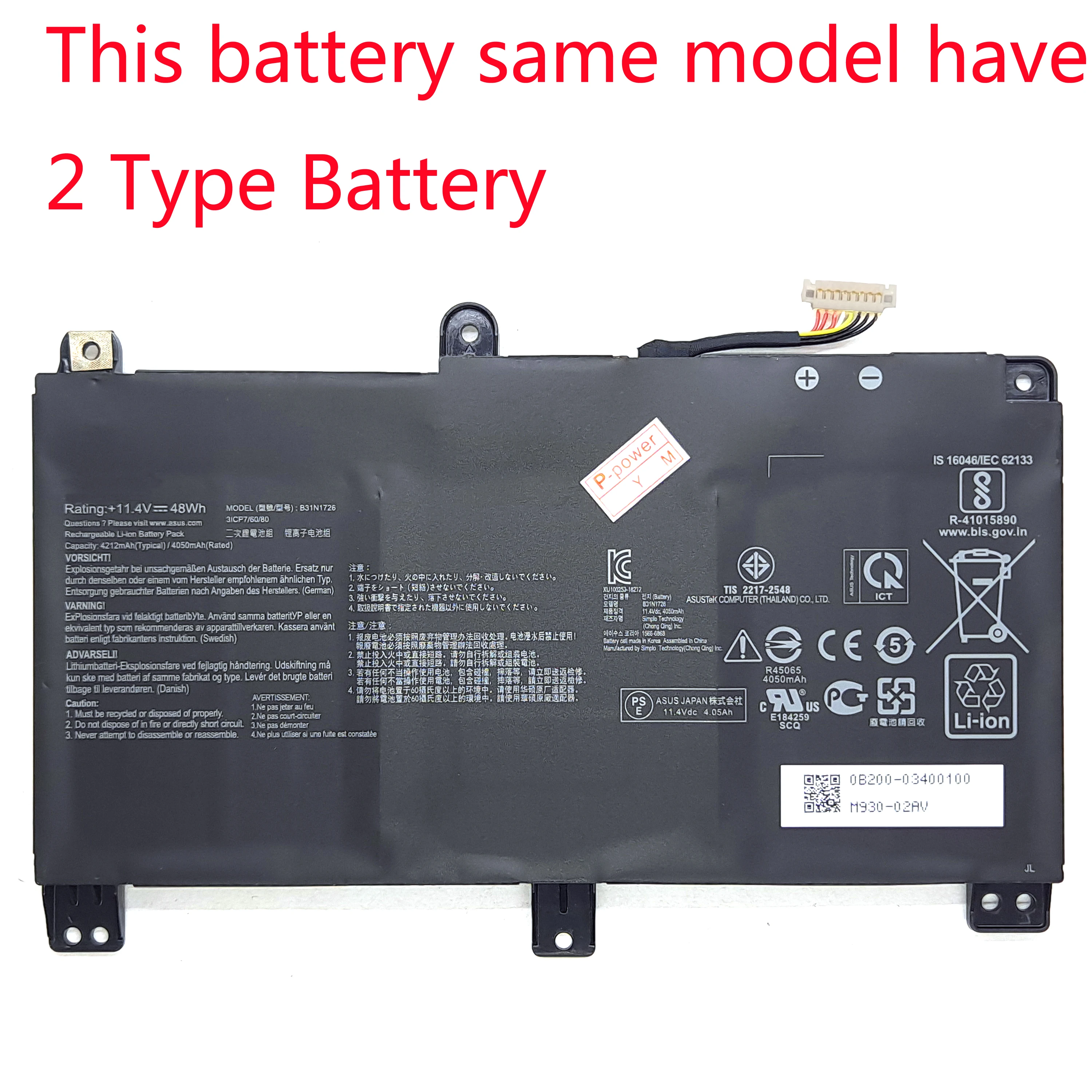B31N1726 (Эта модель имеет 2 одинаковых аккумулятора)