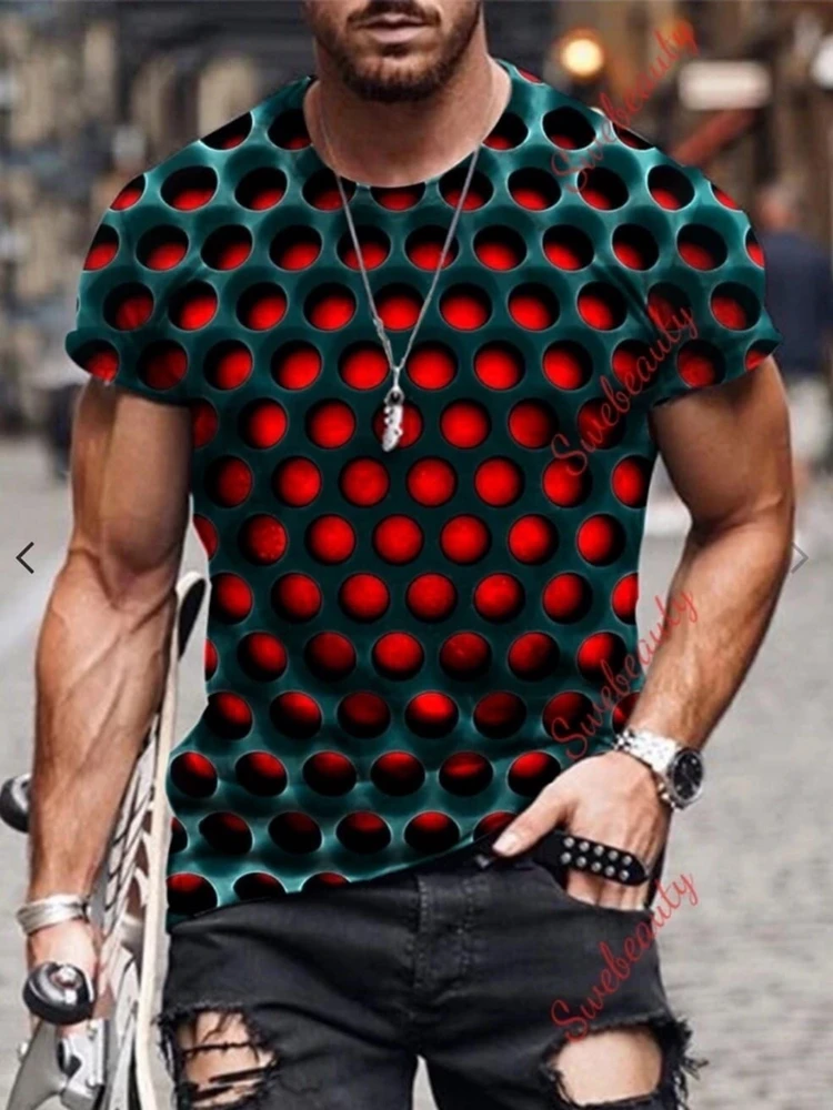 Футболка мужская с принтом в виде красных дыр, модный красивый топ с коротким рукавом и 3D-принтом, крутая уличная одежда, на лето