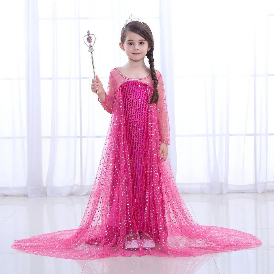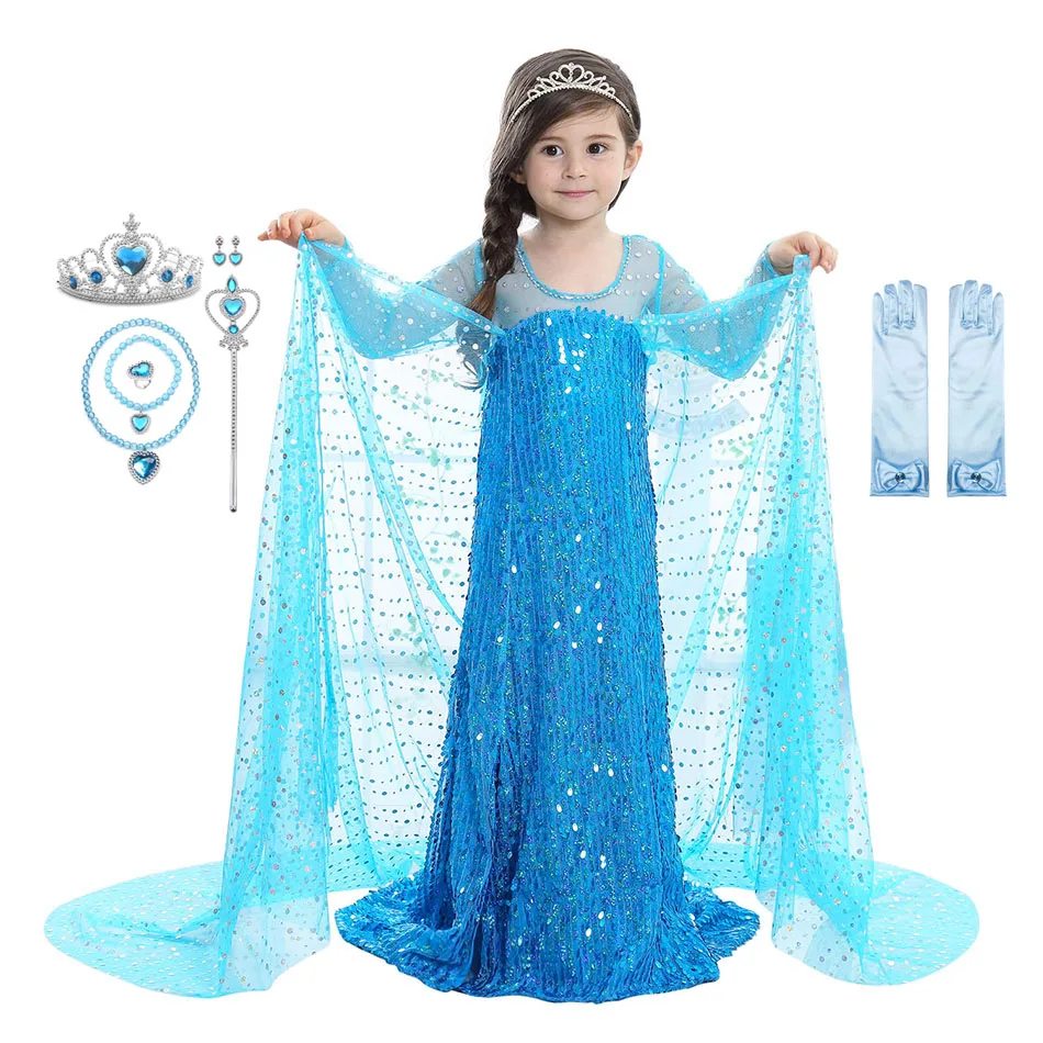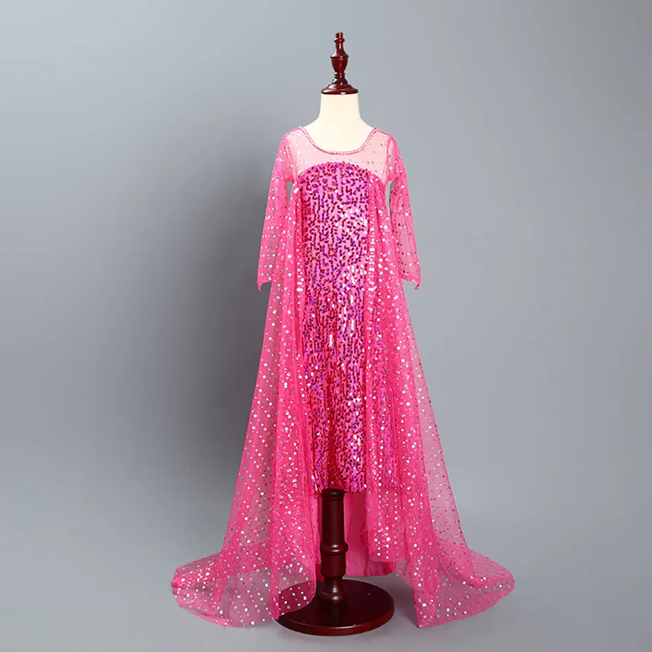 Платье Эльзы с блестками для Хэллоуина, Нарядное вечернее платье принцессы, элегантное Сетчатое платье с длинным рукавом для выпускного вечера, одежда для девочек