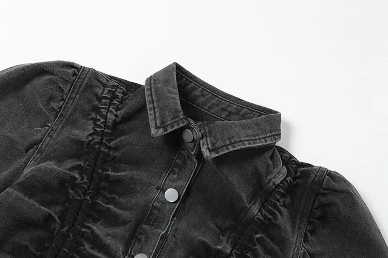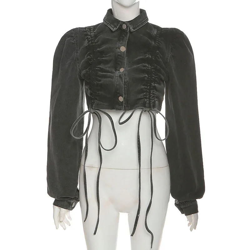 Новинка Осень-зима 2021 Женская модная свободная короткая пикантная укороченная джинсовая однобортная куртка с длинными рукавами и отложным воротником для женщин