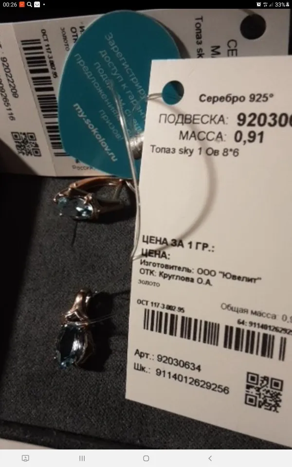 Подвеска SOKOLOV из серебра с топазами, Серебро, 925, Оригинальная ...