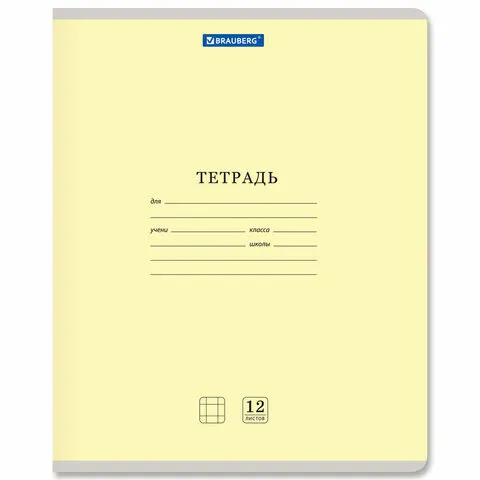 Тетрадь клетка 12 л BRAUBERG "КЛАССИКА" желтая