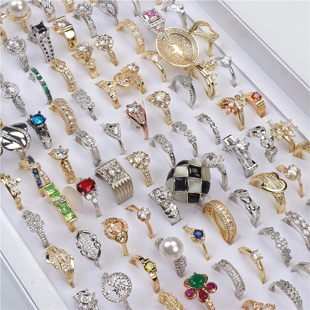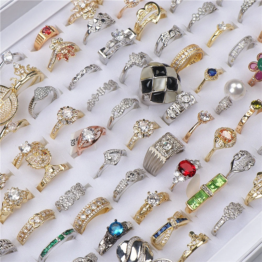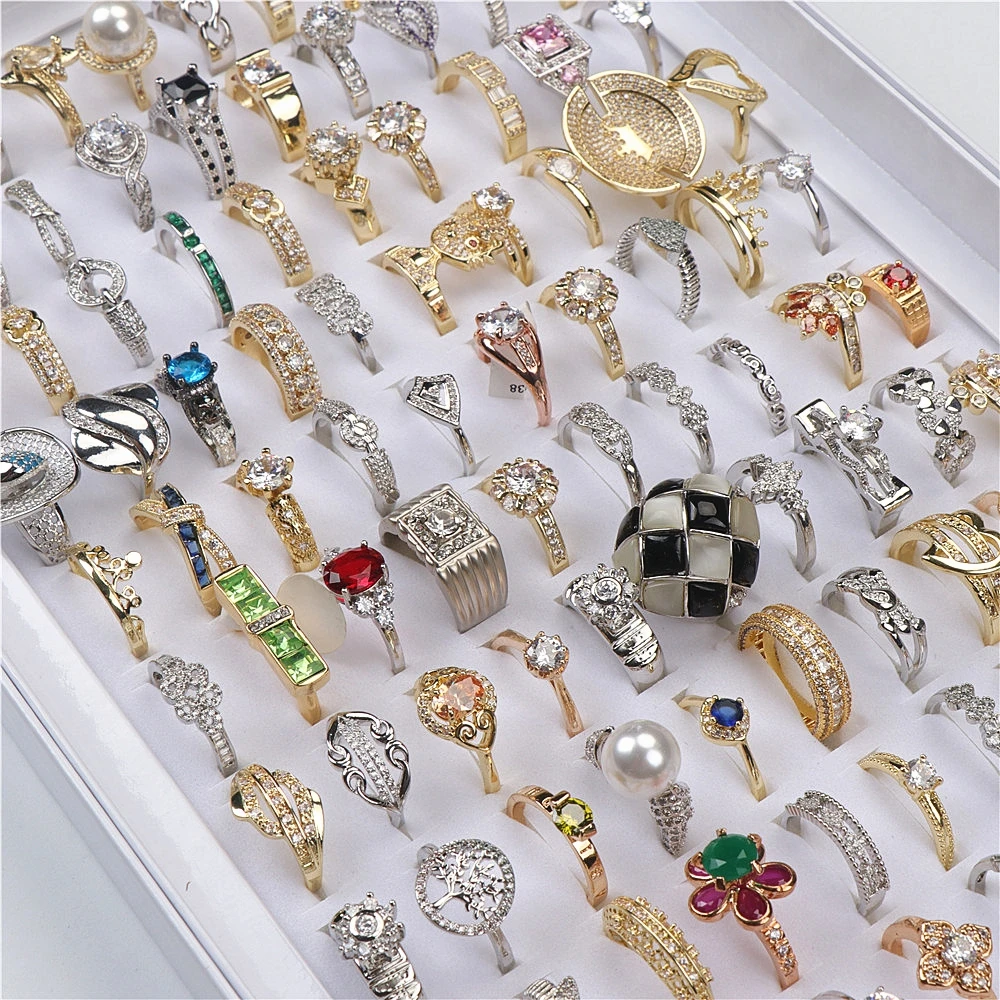 20 шт.лот модные микро-инкрустированные сверкающие циркониевые кольца для женщин Золотой Серебряный Цвет Свадебные обручальные ювелирные изделия смешанные стили