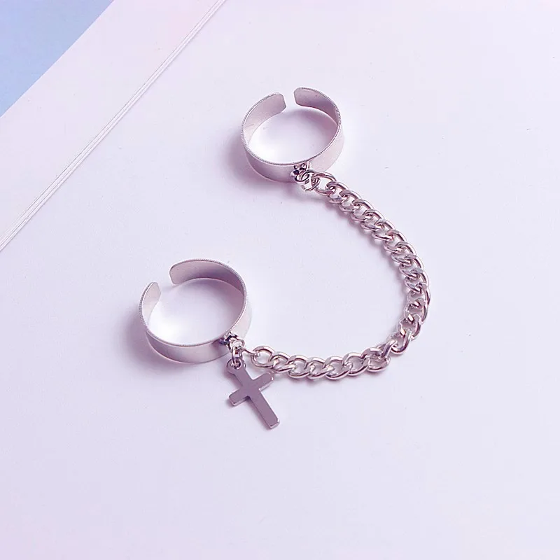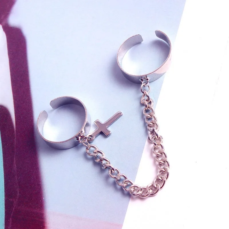Модное Стильное Простое сочетание колец с цепочкой и крестом в стил...