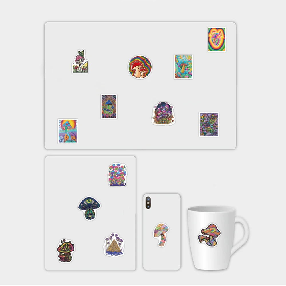 1050100 шт., разноцветные наклейки в виде психоделических грибов