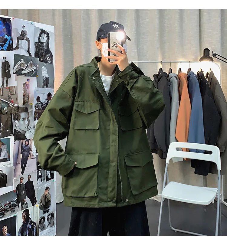 Японская Рабочая куртка мужская мода в гонконгском стиле весна-осень многофункциональное пальто с карманами и воротником-стойкой очень популярная одежда