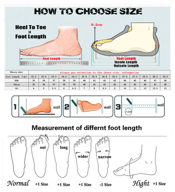 В освещении автомобиля есть отдельные цвета, конкретная обувь актуальна, пожалуйста, будьте внимательны. Обратите внимание: Выберите размер обуви в соответствии с длиной Вашей стопыЕсли вы хотите сделать очень правильный выбор, вы должны выбрать по таблице размеров на изображении!