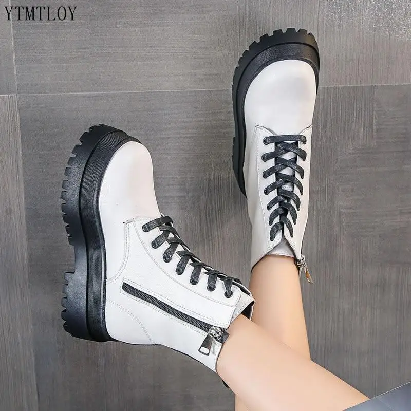 Ботинки женские из мягкой искусственной кожи, на платформе, белые, мотоциклетные, осенне-зимние, 2021
