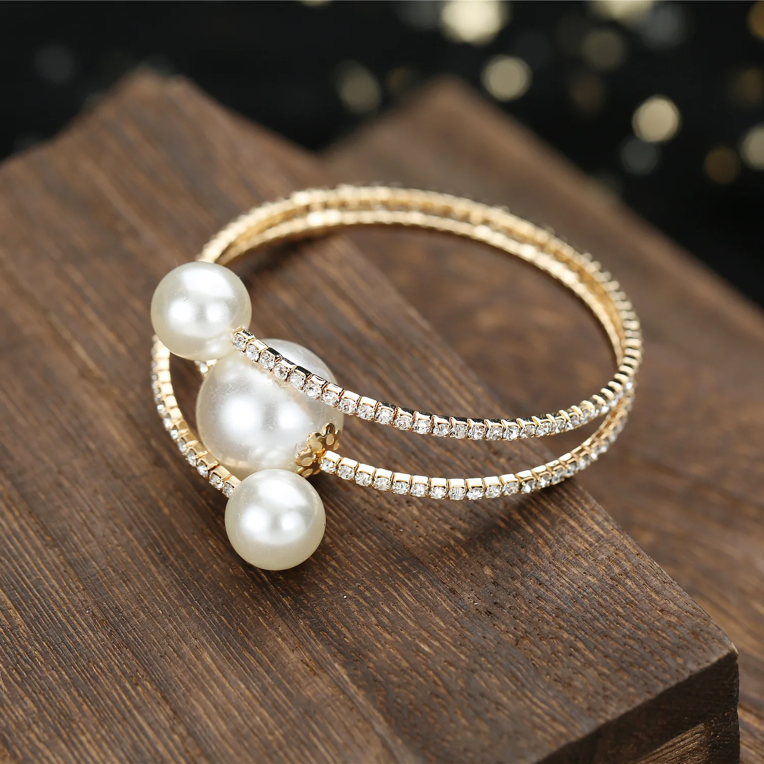 1 х многорядные стразы, жемчужный браслет
