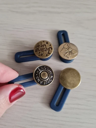 Идея замечательная. Я взяла набор из разных четырёх пуговиц. Все они стандартного размера, качество хорошее. Петля растягивается слабо, туговата, но дополнительные 2см вы получите, в любом случае)))