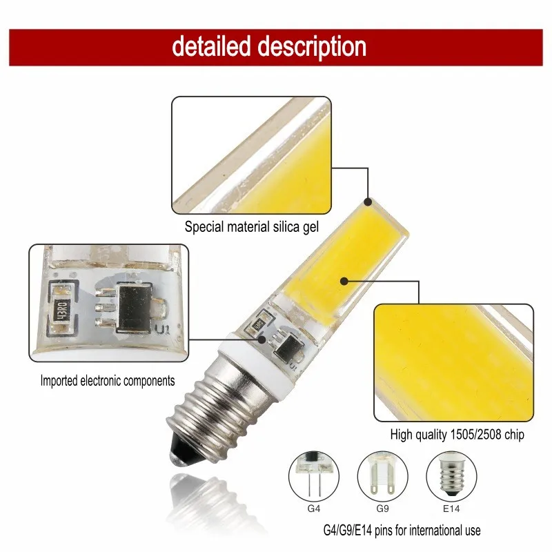 Мини-лампа G4, G9, E14, светодиодная лампа COB 6 Вт, лампа переменного тока 12 В, 220 В, свечные лампы, Замена 30 Вт, 40 Вт, галогенная лампа для Люстра-прожектор