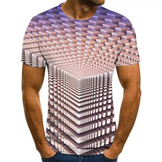 Новинка 2020, летняя повседневная мужская футболка, топы в трехмерную клетку в стиле Харадзюку, трехмерная спиральная футболка с круглым вырезом, рубашка, женская уличная одежда