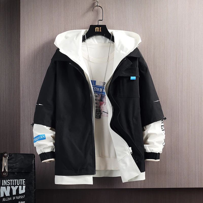 Осень весна 2022 толстовка с капюшоном для мужчин черный белый хип-...
