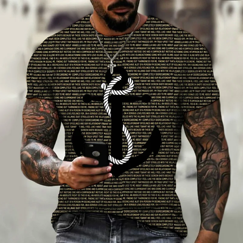 Футболка мужская с 3D-принтом якоря, модная уличная одежда в морском стиле, Свободный Топ с круглым вырезом, большие размеры, лето