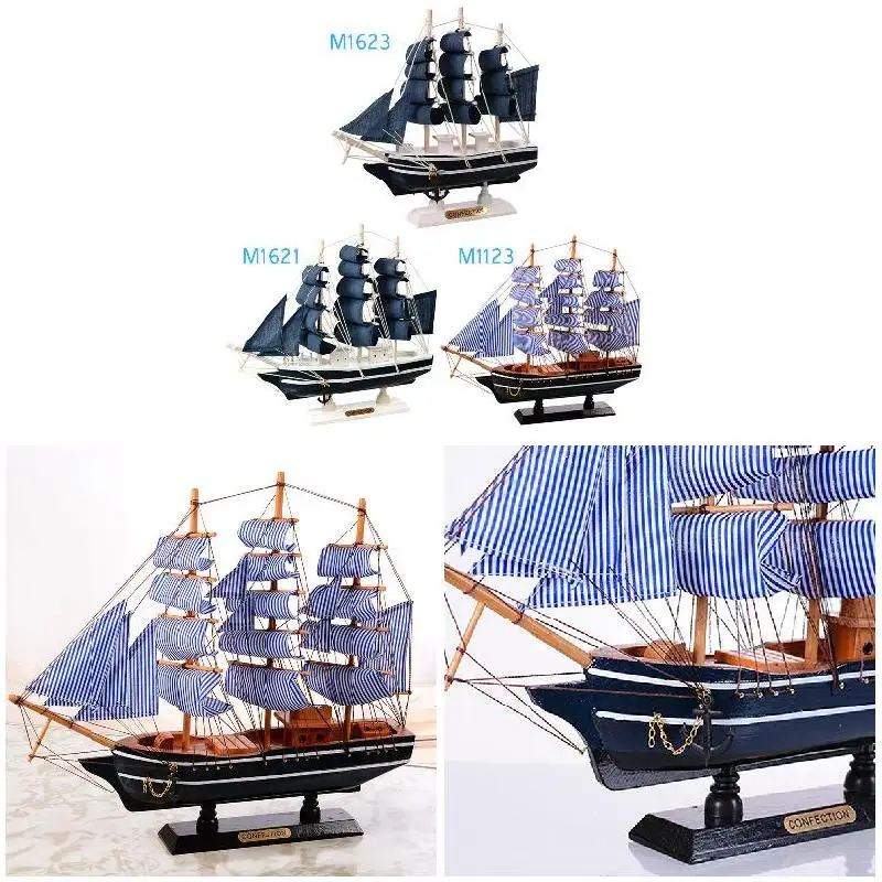Деревянный Парусный Корабль в средиземноморском стиле, украшение для дома, резная Морская Лодка ручной работы, модель в подарок He