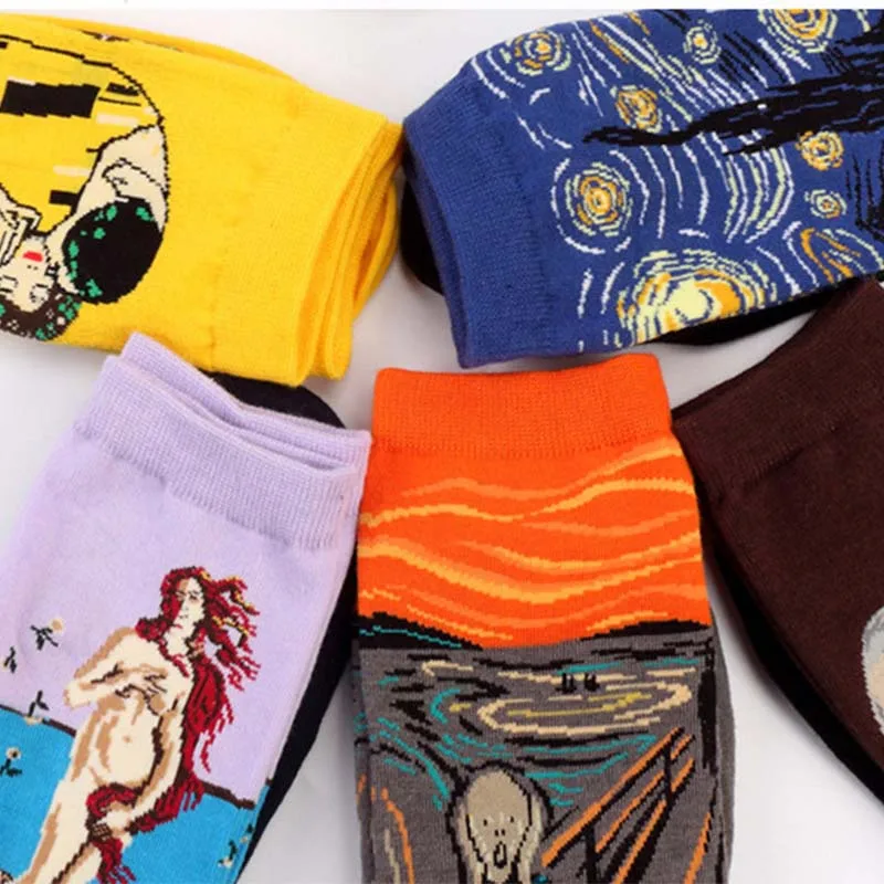 Носки женские в стиле ретро, повседневные, с рисунком Ван Гога, сер...
