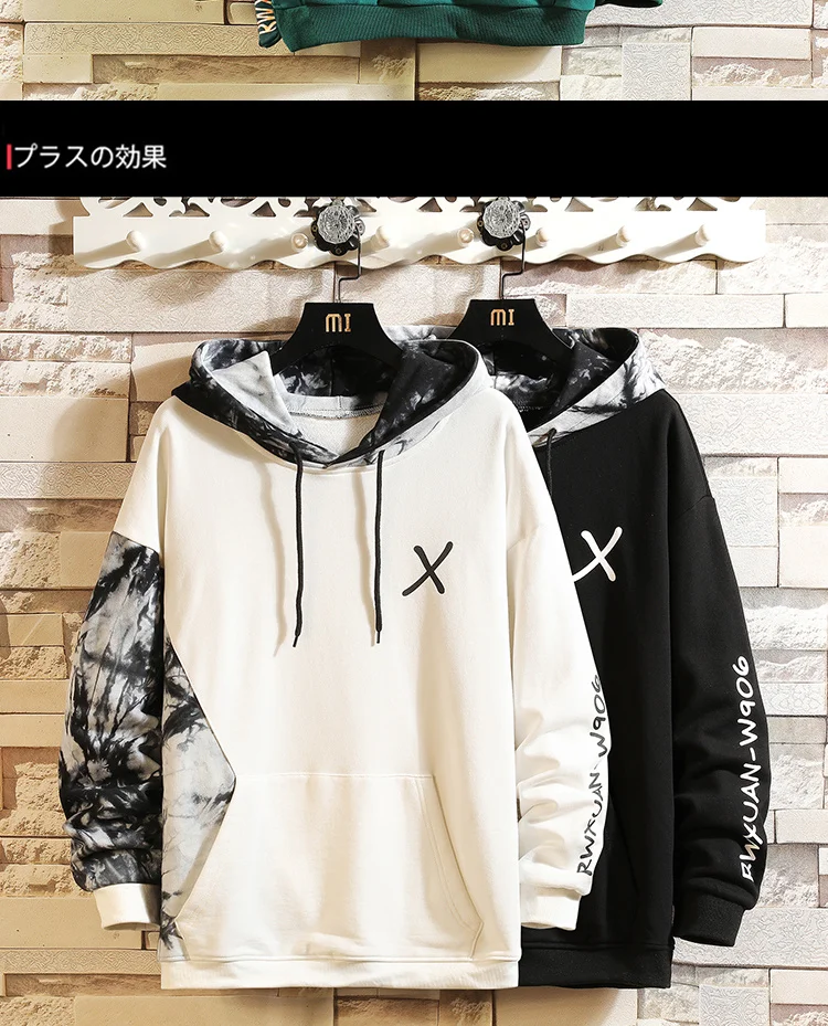 2022 толстовки с капюшоном мужская Японская уличная одежда стиль хип-хоп Уличная Повседневная одежда черного и белого цвета с длинными рукавами