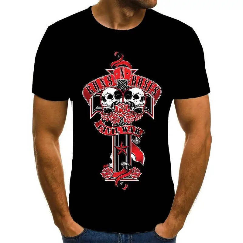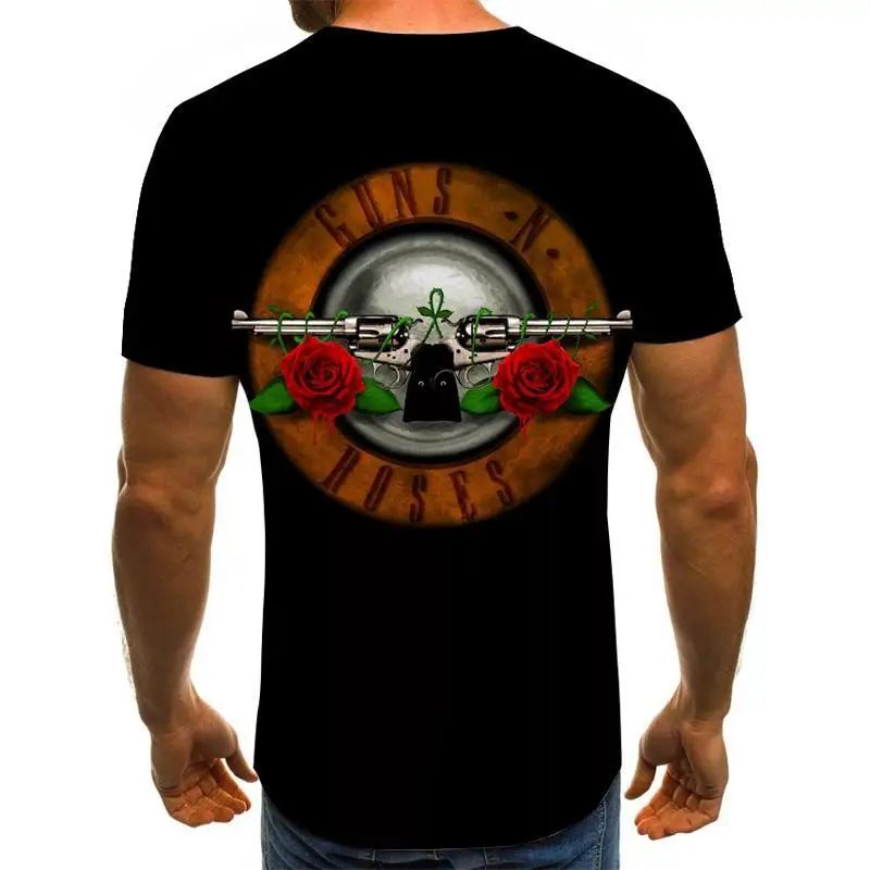 Новинка, модная футболка в стиле панк, футболка с принтом Guns N Roses, Мужская черная футболка, топы из тяжелого металла, платье с 3D-принтом оружия и розы, футболки в стиле хип-хоп