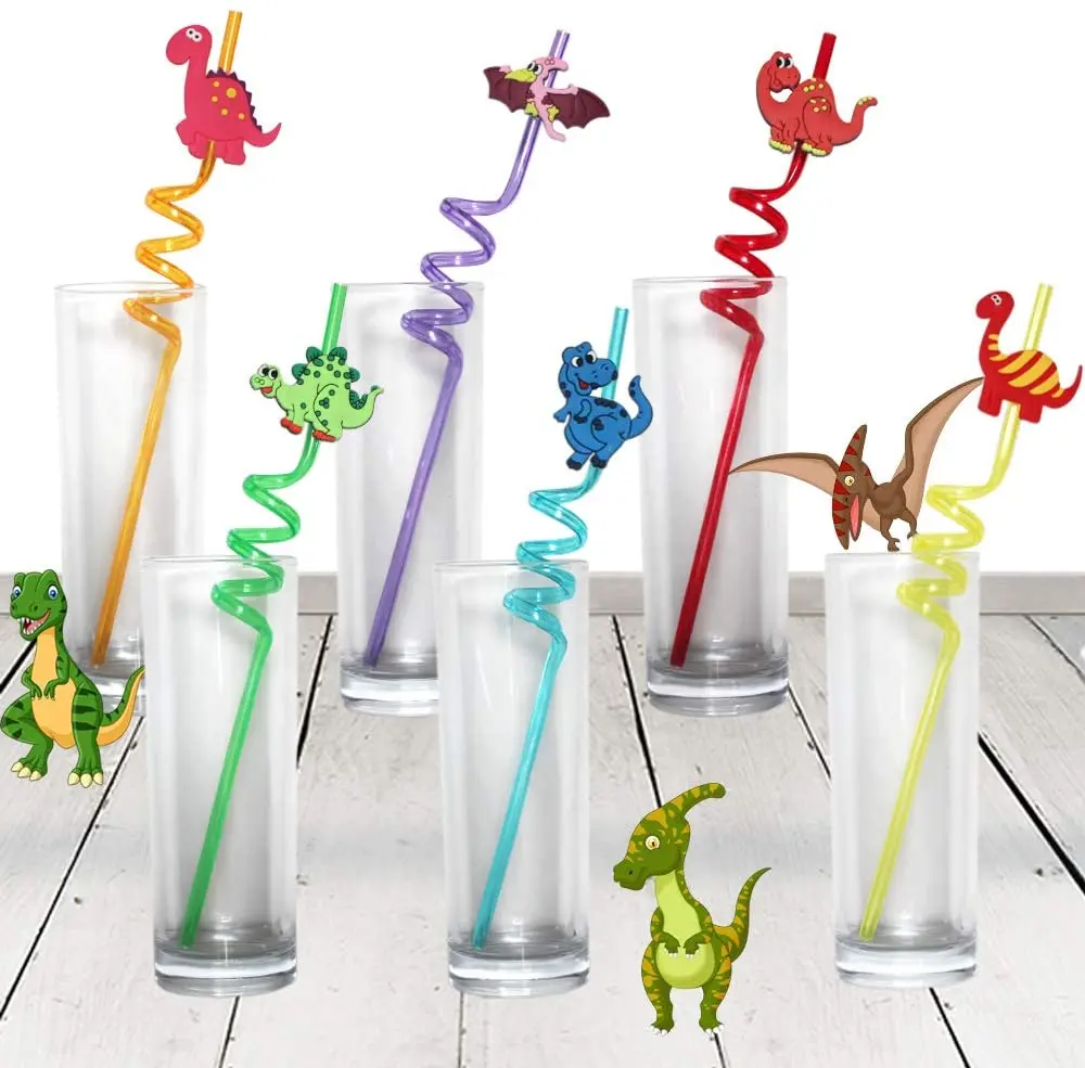 8 шт. многоразовые Мультяшные соломинки для напитков в виде динозавра для мальчиков, Детские праздничные украшения на день рождения, соломинки в виде животных для тематической вечеринки в стиле Юрского периода