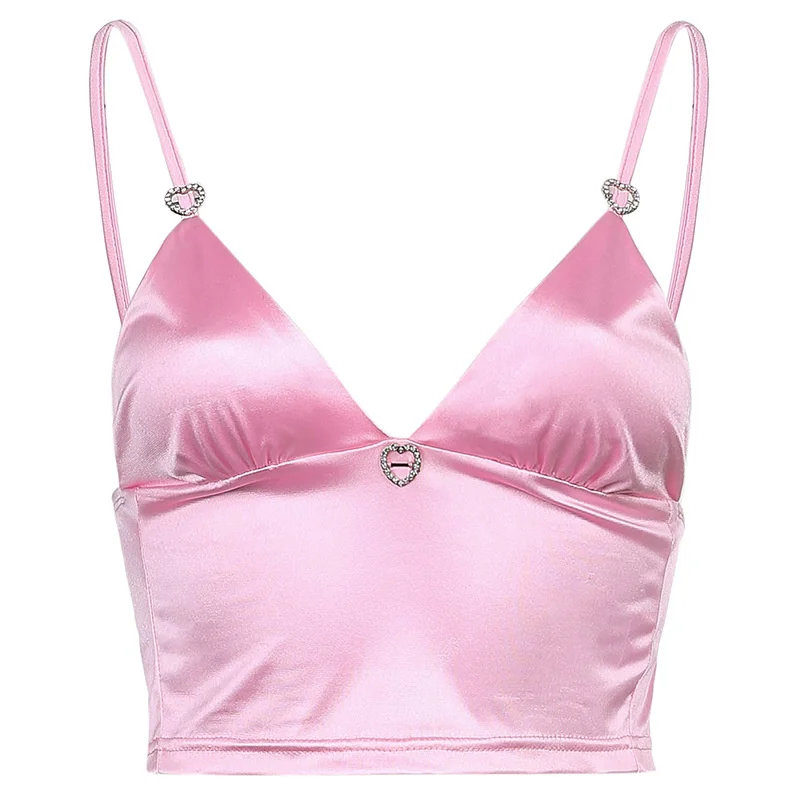 Кроп-Топ женский атласный, пикантный бюстгальтер без косточек, вязаный крючком Топ, укороченный топ с наполнителем, майка на бретелях-спагетти