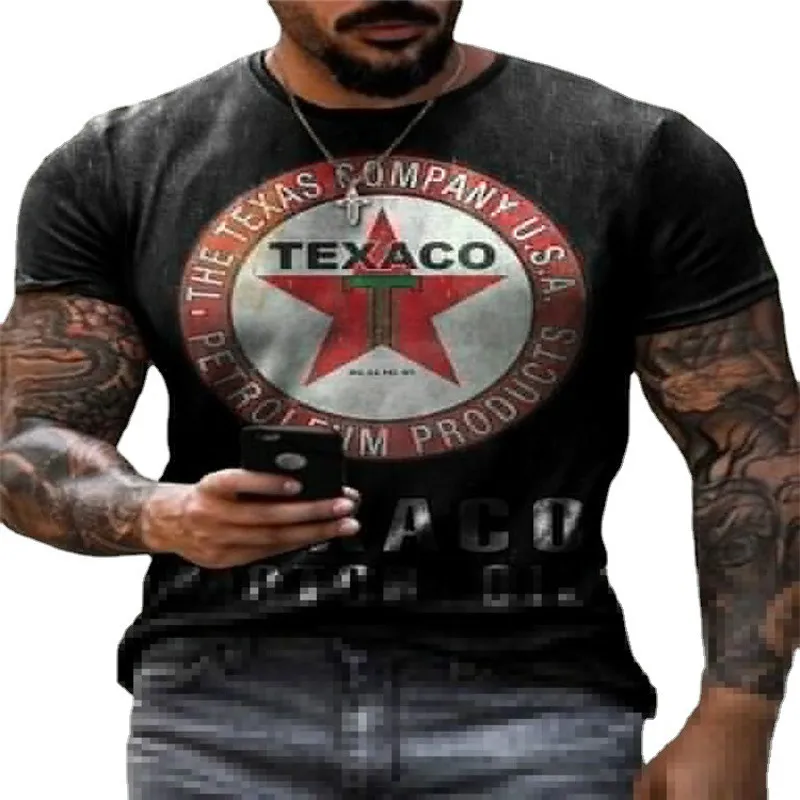 Мужская футболка с принтом в виде пятиконечной звезды, Повседневная Свободная рубашка из полиэстера с круглым вырезом и короткими рукавами, лето 2021