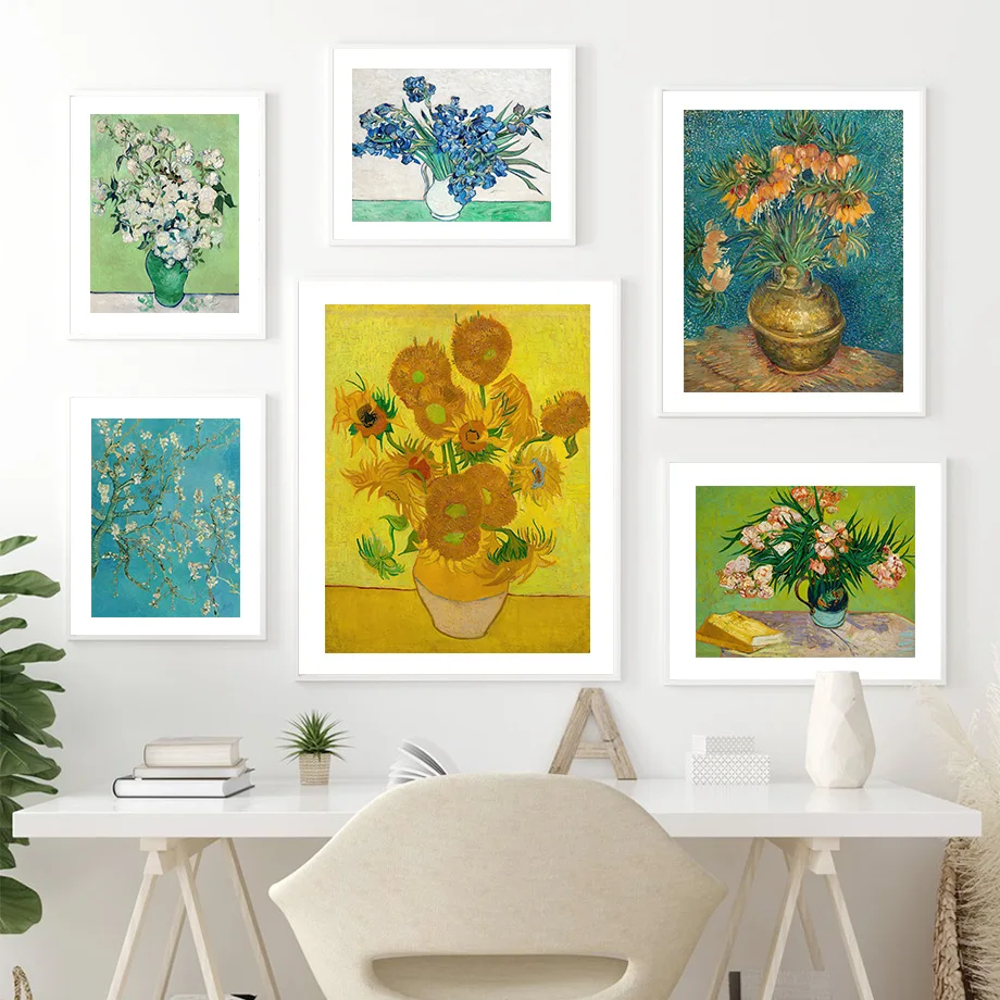 Картина на холсте с изображением подсолнуха, радуги, розы, олеандра