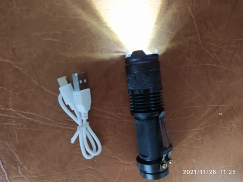 фонарик отличный, светит ярко и далеко, маленький, корпус алюминиевый. заряжается от телефонной зарядки.