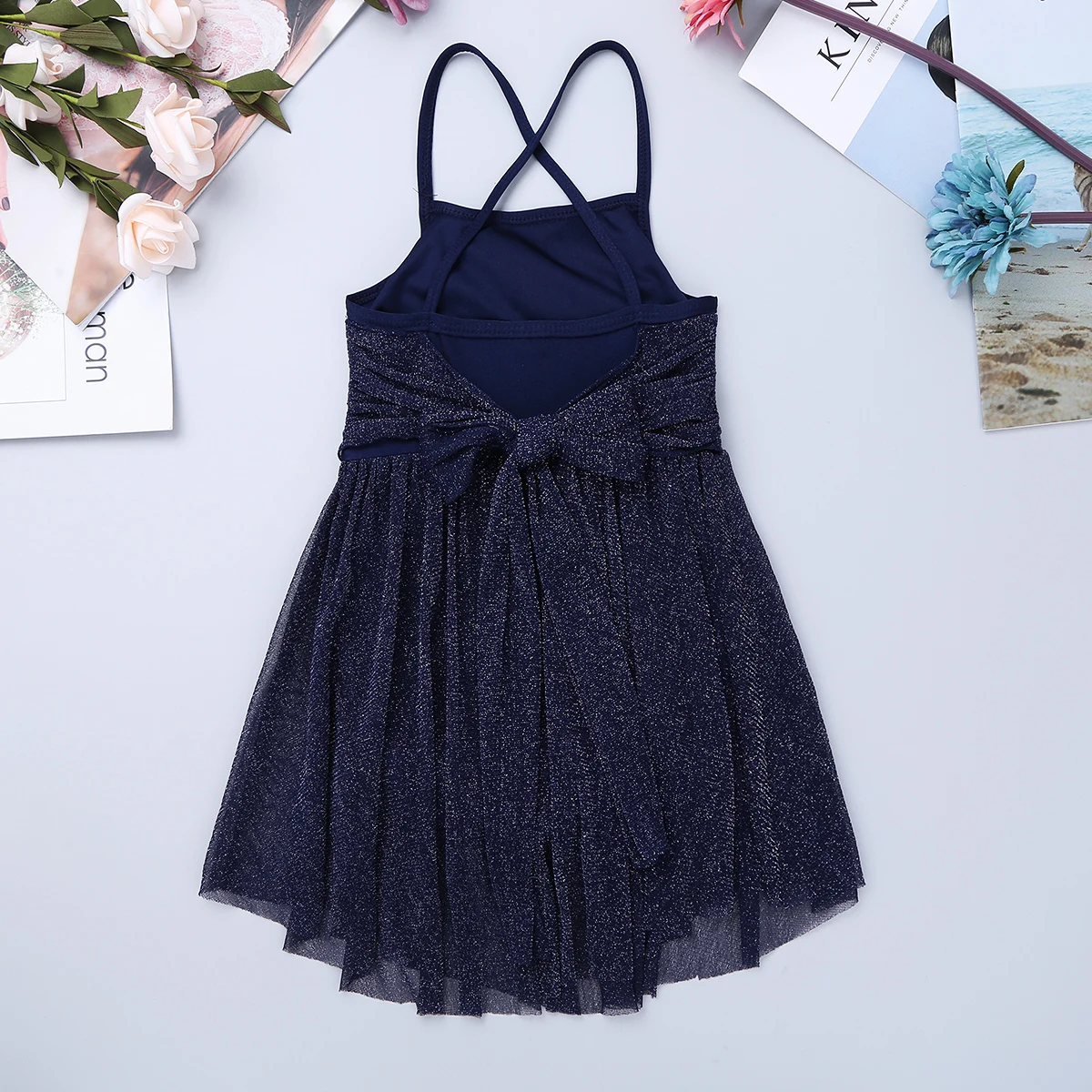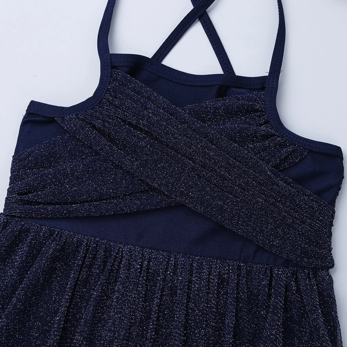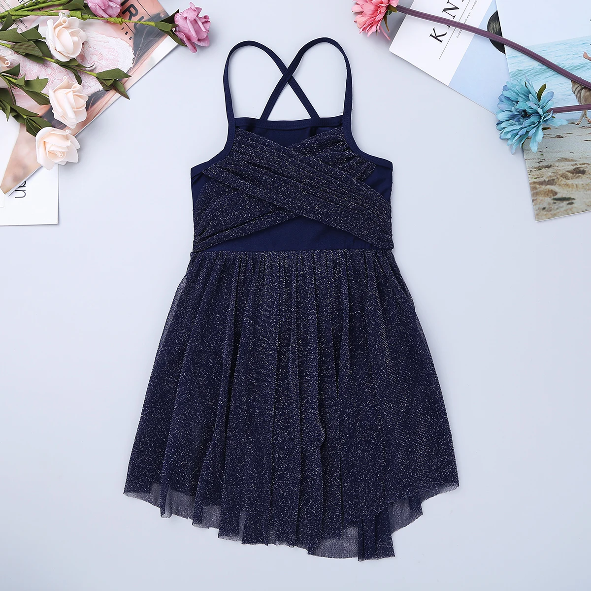 Детский женский блестящий костюм, блестящий сетчатый костюм на тонких лямках для балета и латиноамериканских танцев