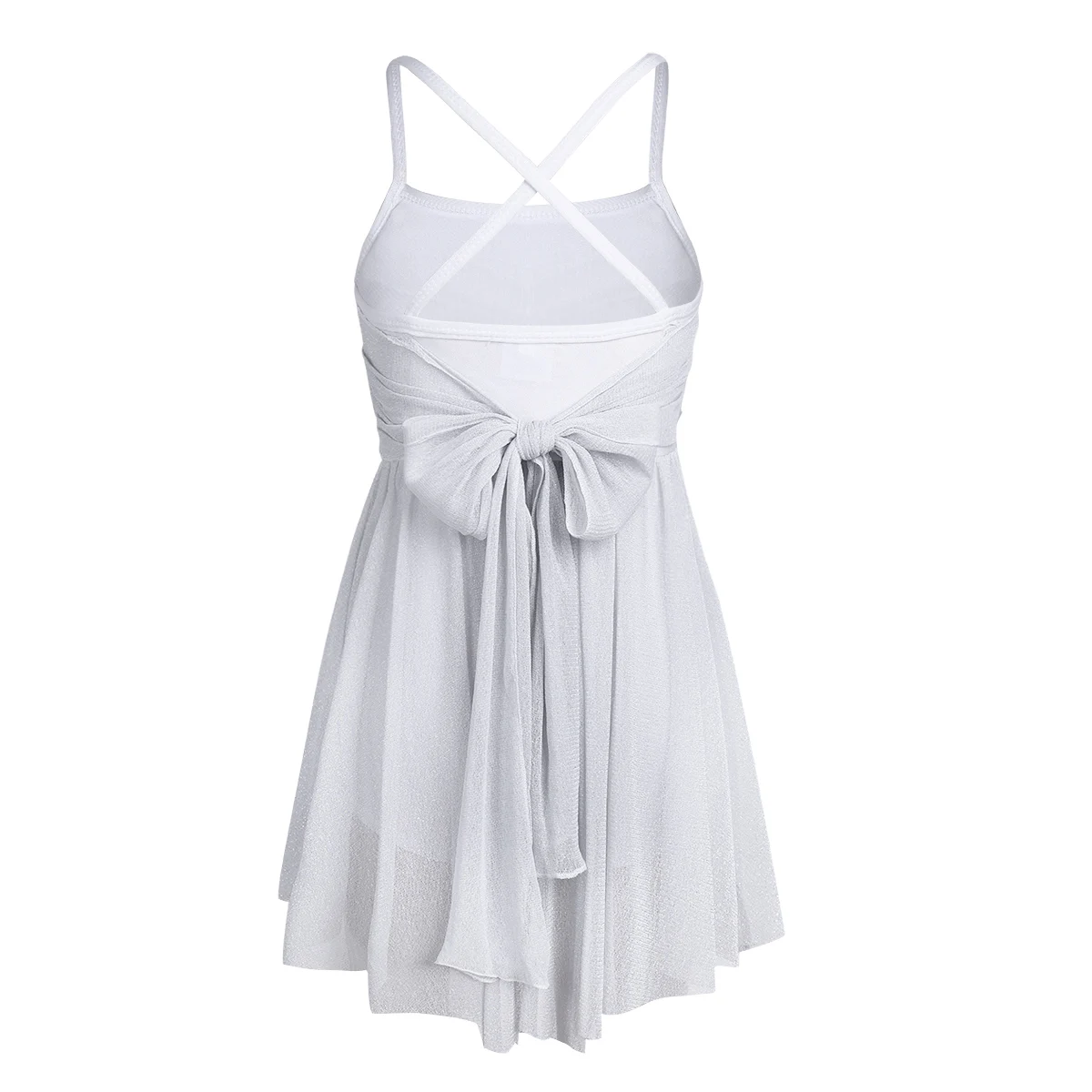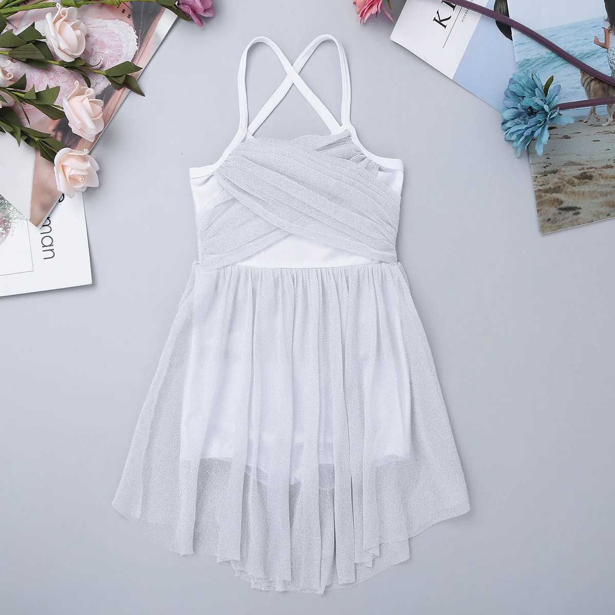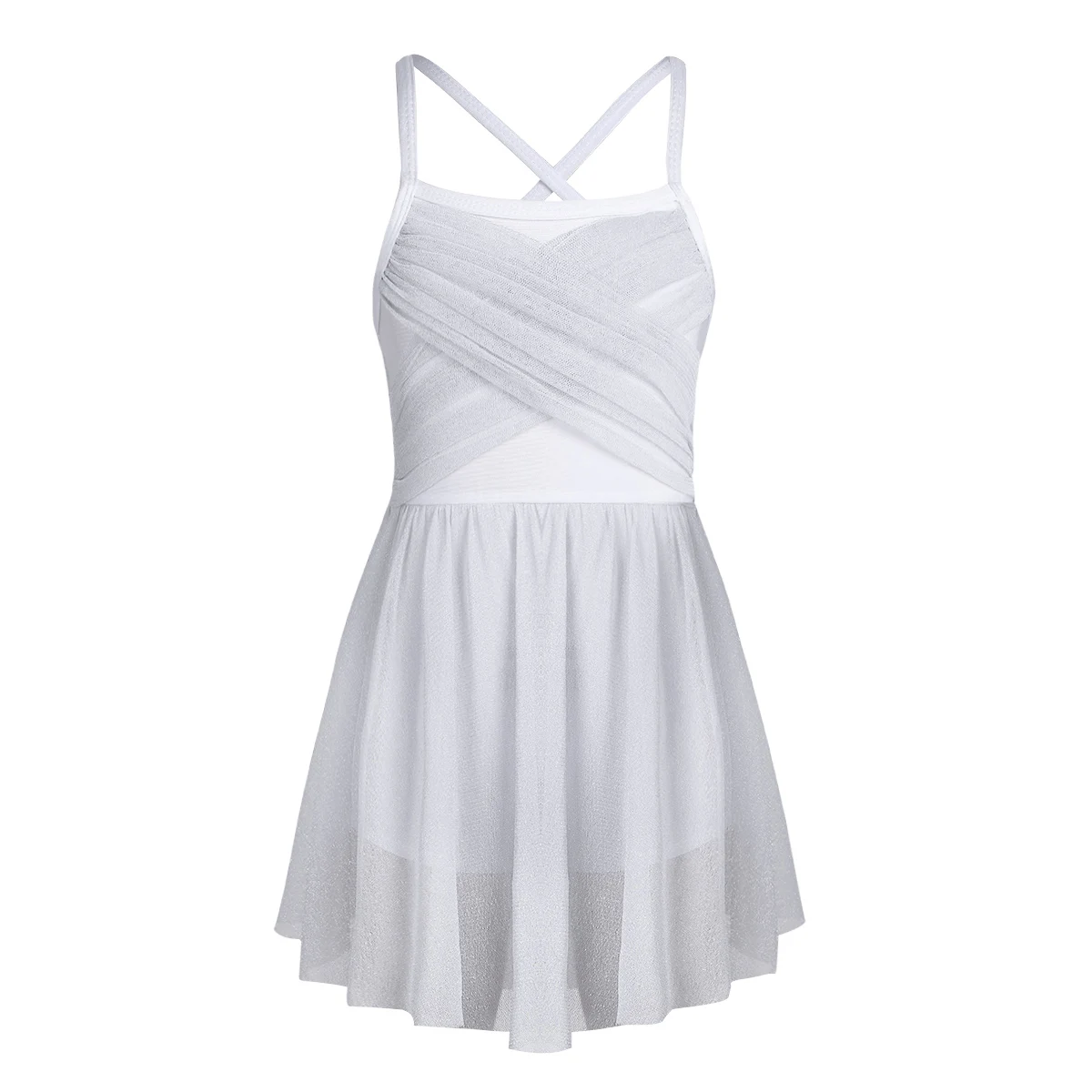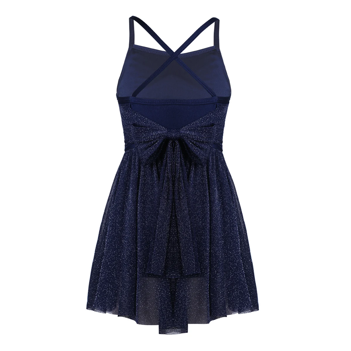 Детский женский блестящий костюм, блестящий сетчатый костюм на тонких лямках для балета и латиноамериканских танцев