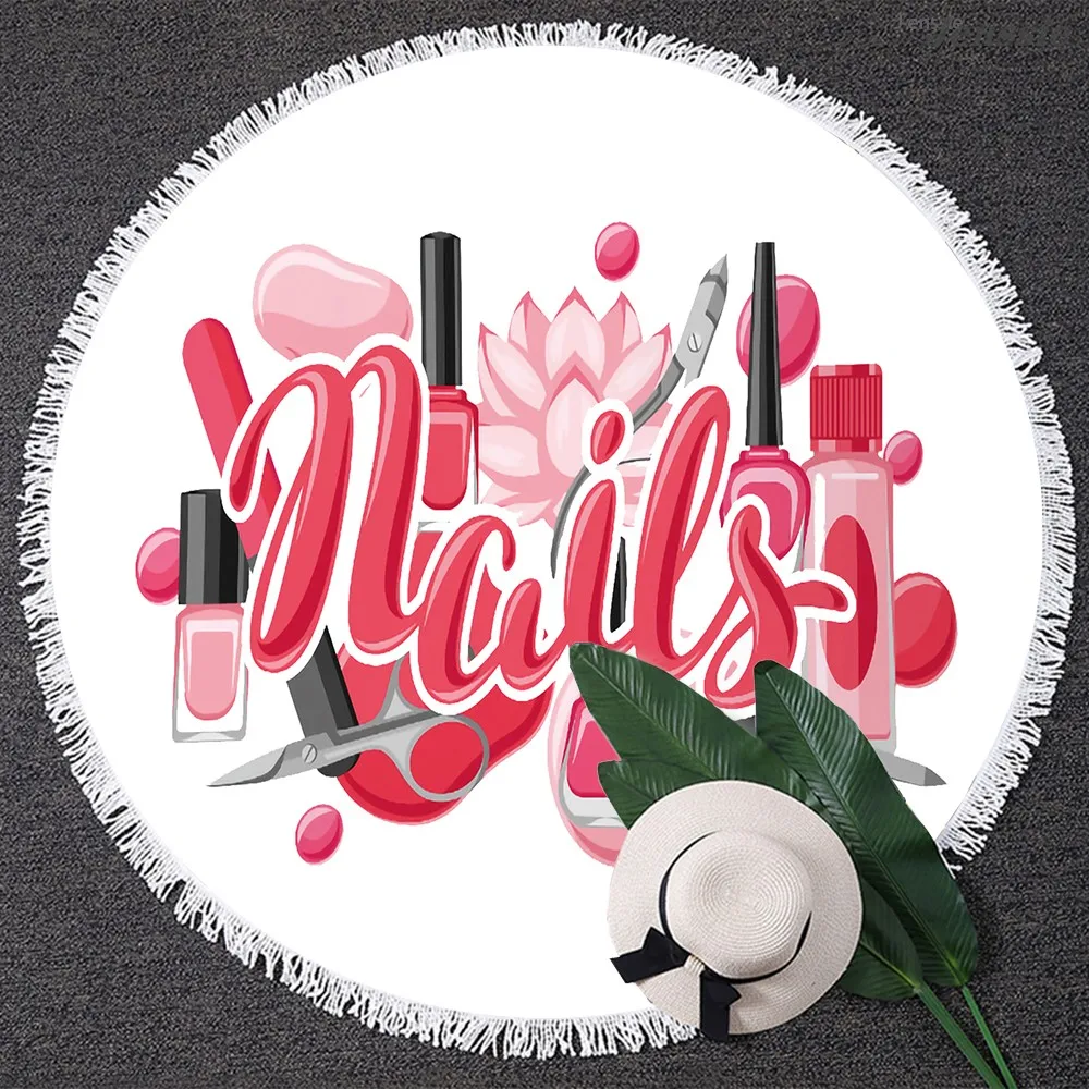 3D лак для ногтей с принтом, летнее пляжное полотенце из микрофибры, быстросохнущее круглое полотенце, гобелен для девочек, маникюр, студия для ногтей, коврик для йоги для взрослых